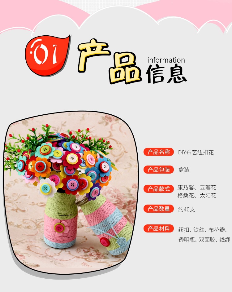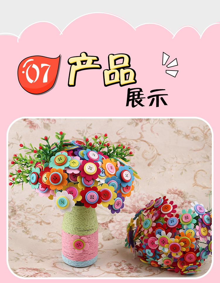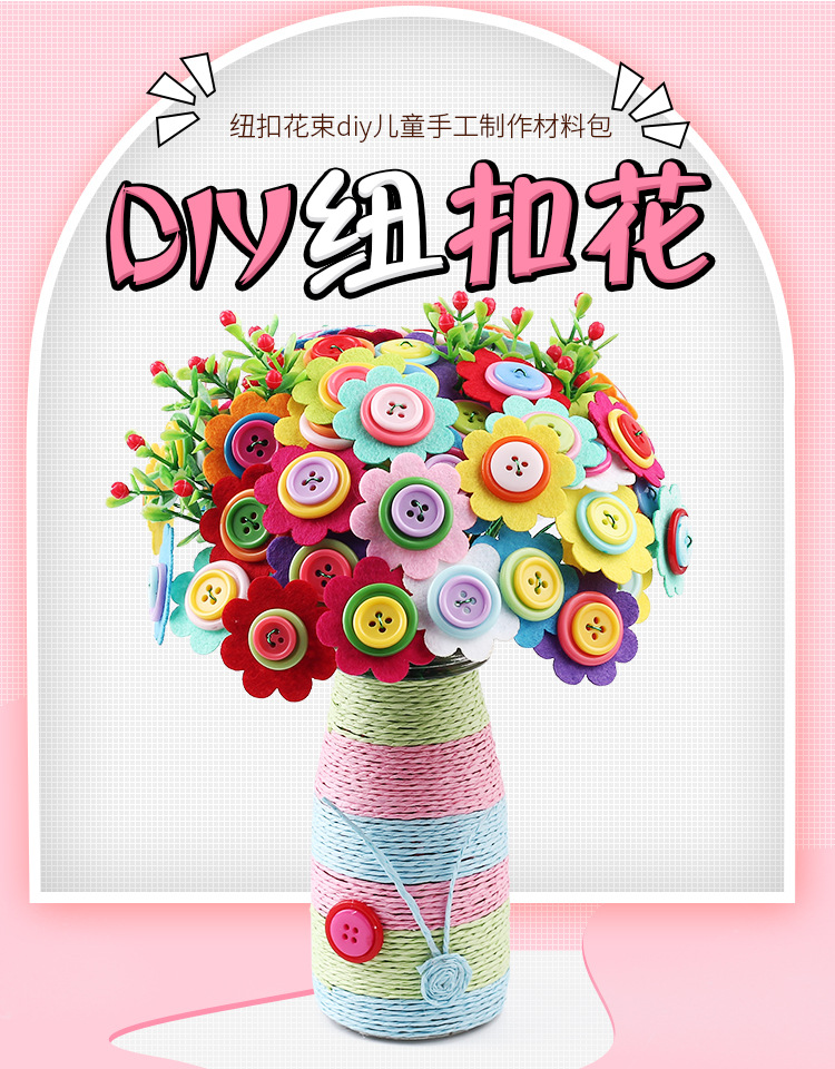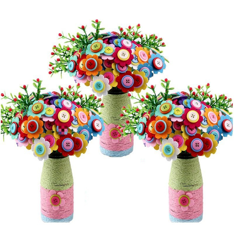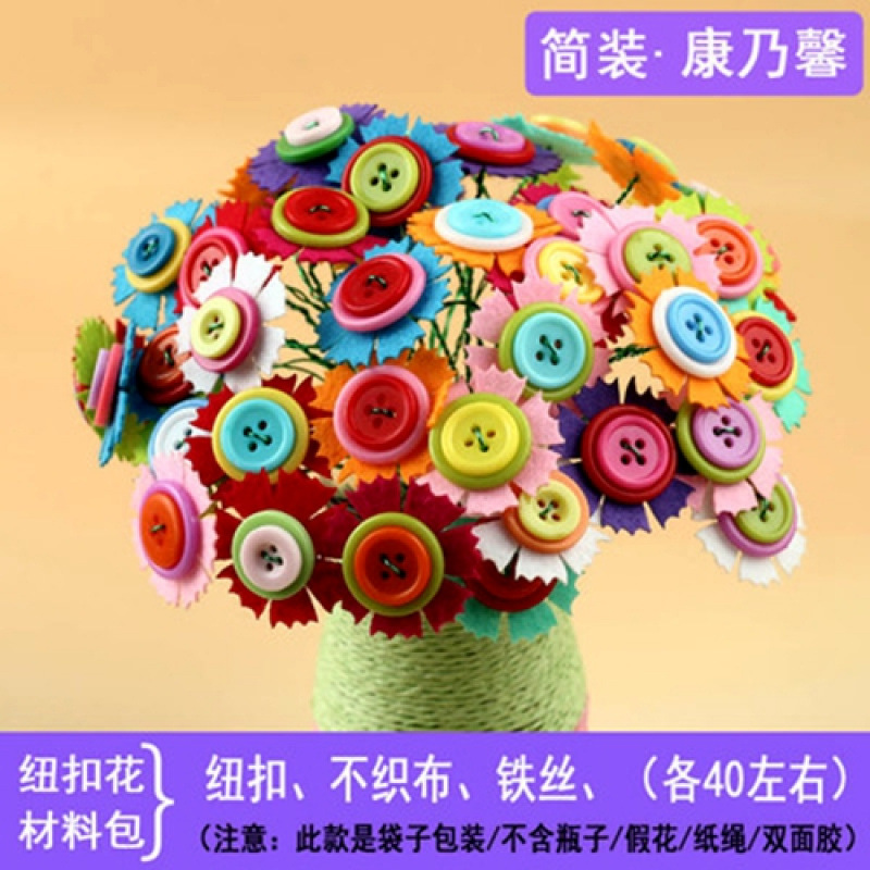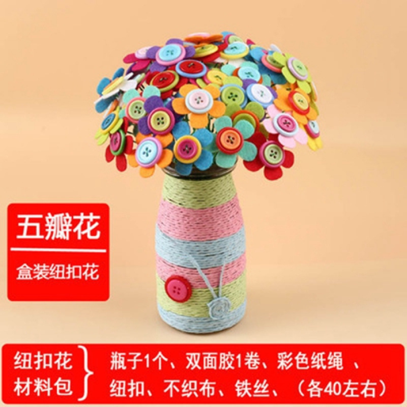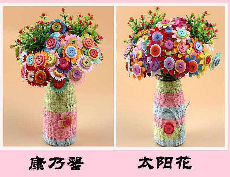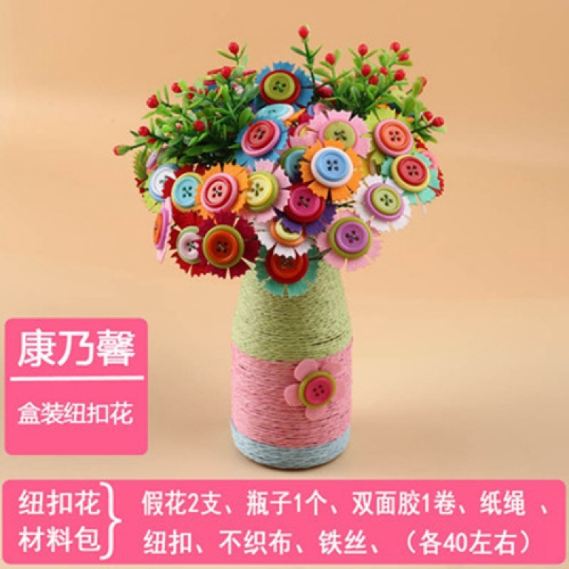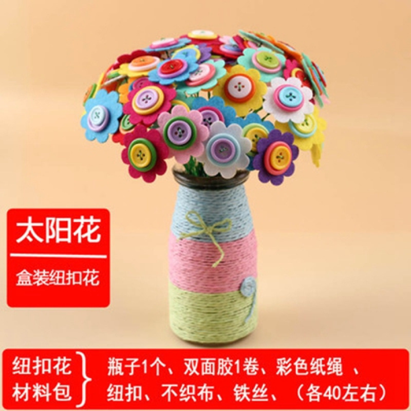 단추 꽃다발 수제 DIY 만들기 재료 패키지 교사의 날 유치원 초등학생 창조적 인 꽃병스토어 가기