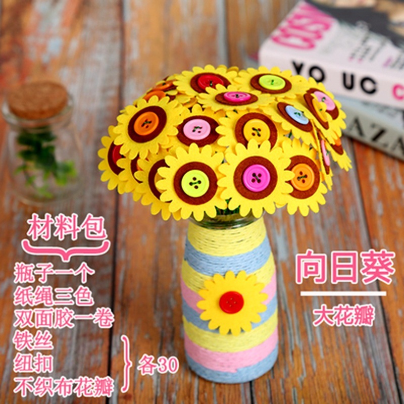 단추 꽃다발 수제 DIY 만들기 재료 패키지 교사의 날 유치원 초등학생 창조적 인 꽃병