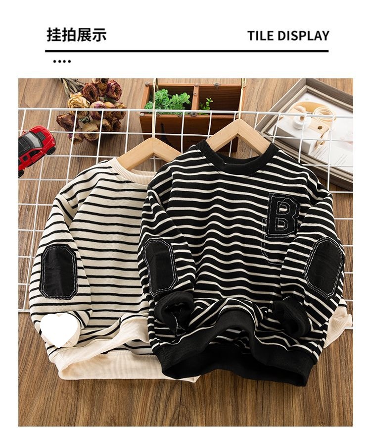 폭발 소년 땀 봄과 가을 2025 새로운 기모 두꺼운 중대형 어린이 줄무늬 소년 아이들의 새 머리스토어 가기
