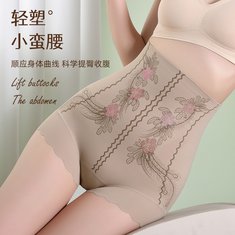 새로운 인쇄 된 원활한 산후 높은 허리 배꼽 바지 섹시한 바디 모양의 엉덩이 속옷 허리 배꼽