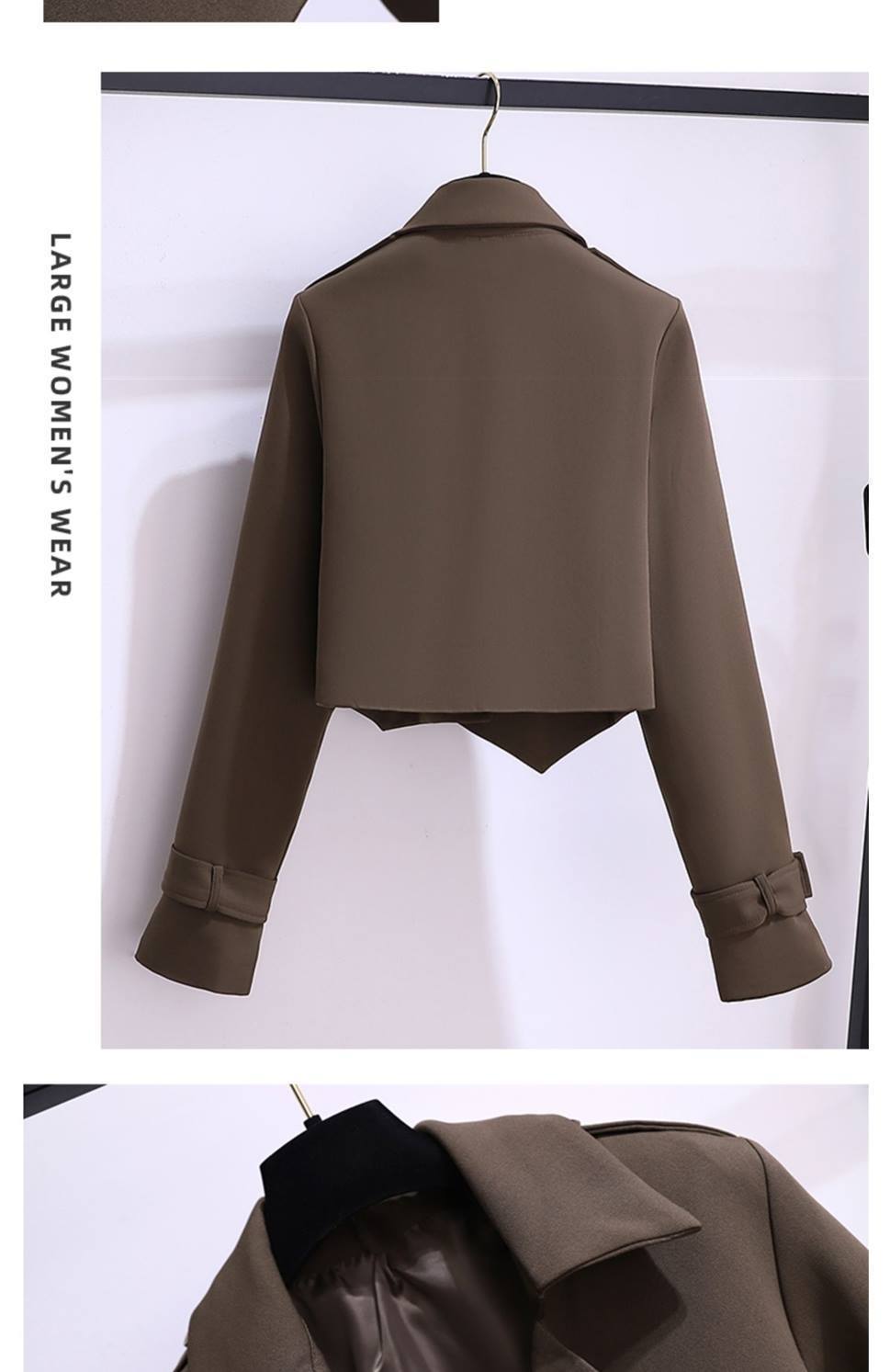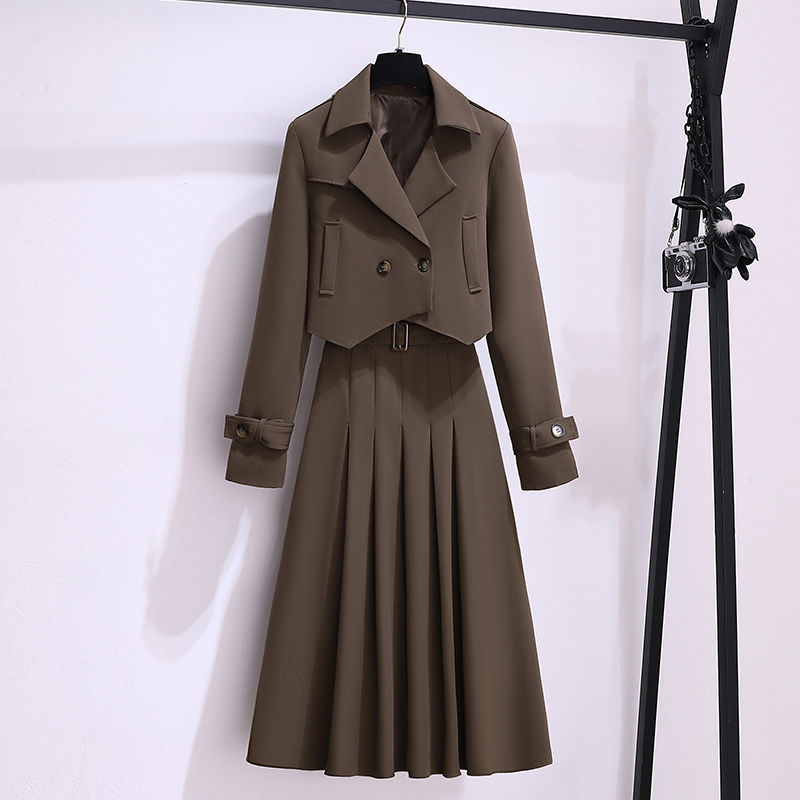 플러스 사이즈 여성 세트 재킷 스커트 투피스 세트 2023 가을 새 뚱뚱한 자매 프랑스 디자인 센스 세트