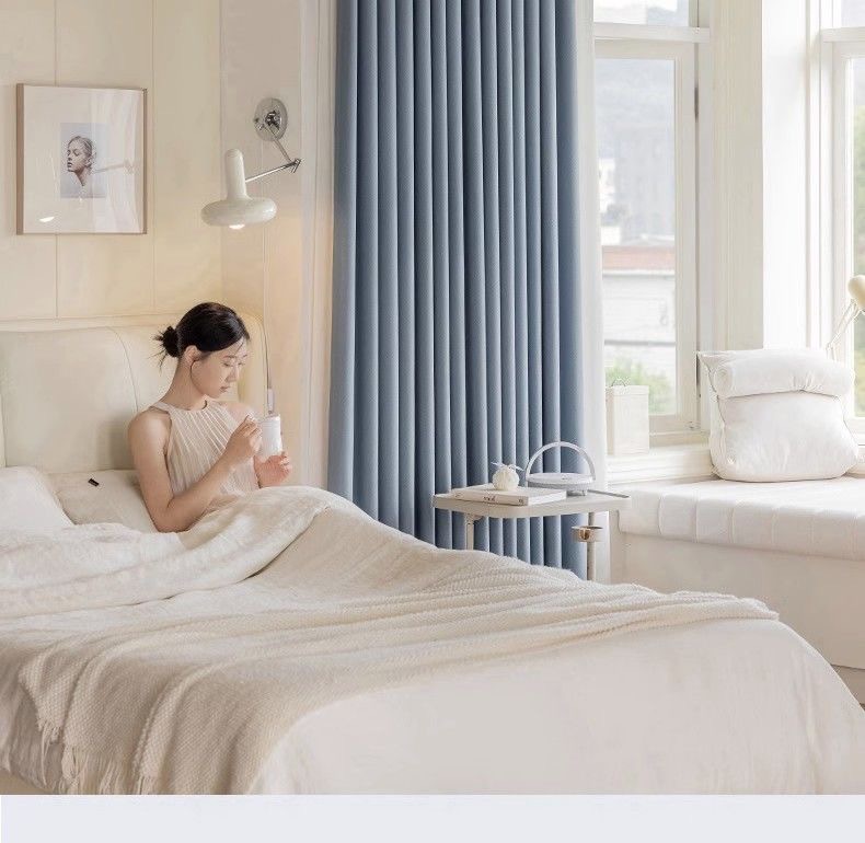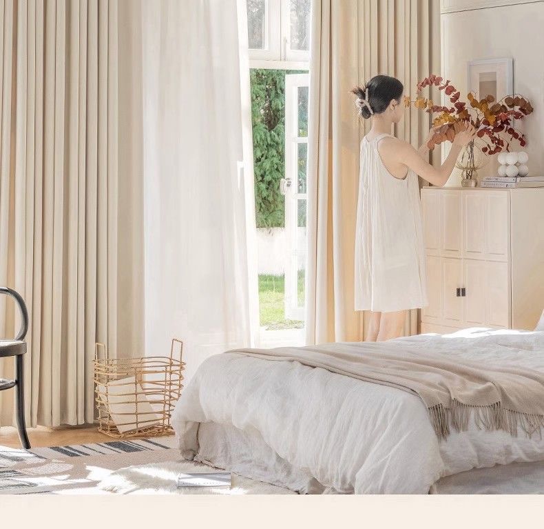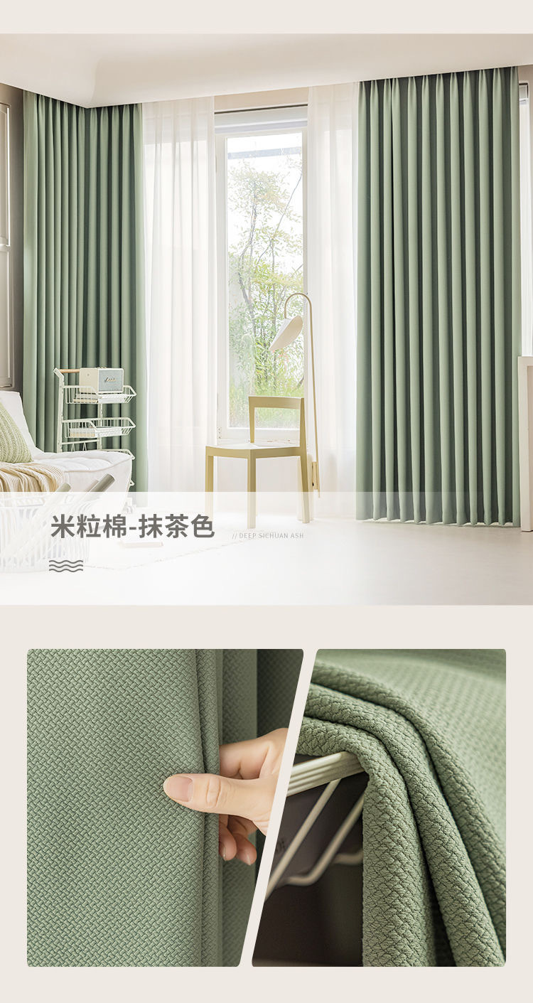 침실, 발코니, 거실용 양면 쌀알 면 말차 녹색 면 및 리넨 커튼, 완전 암막 및 모양 유지 기능이 있는 모던 암막 커튼