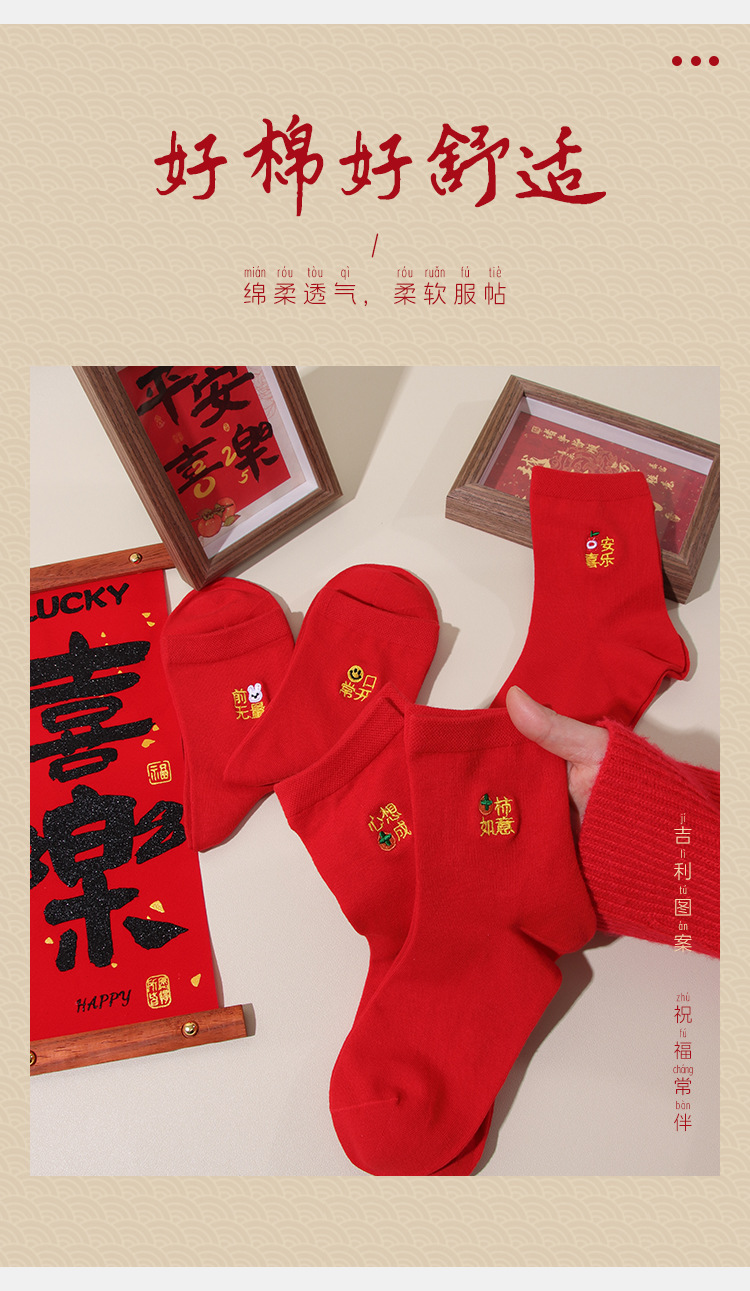 양말 여성의 가을과 겨울 새로운 축제 축복 빨간 양말 새해 자수 여성 양말 모든 최고의 빗질면 양말 도매스토어 가기
