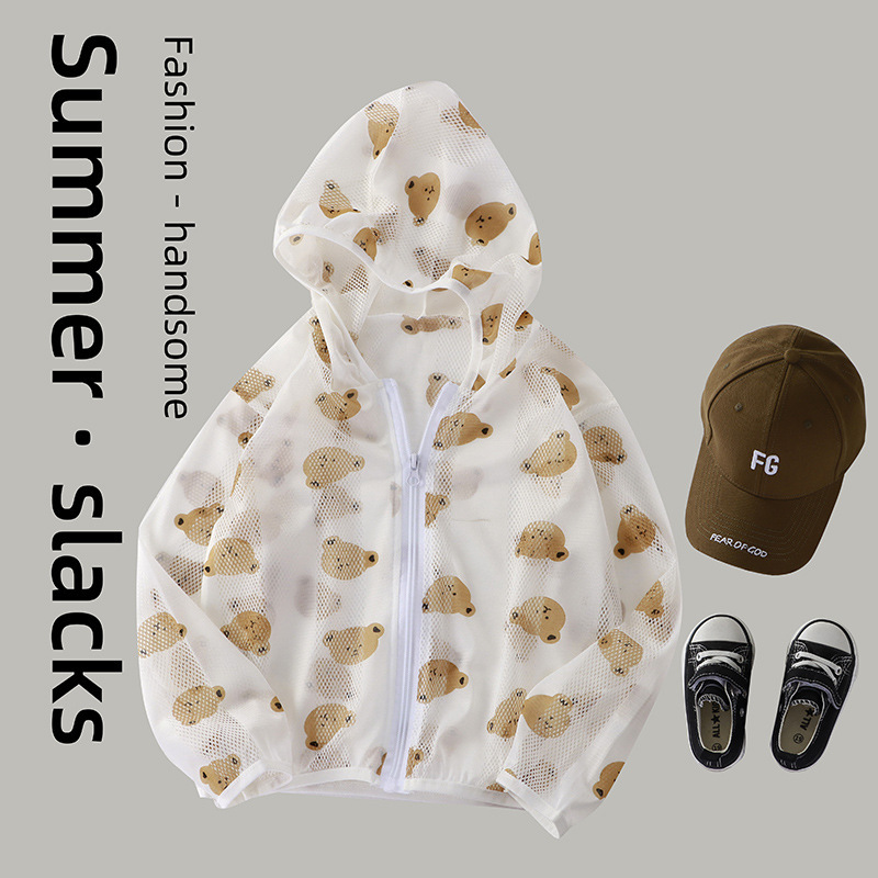 어린이 선 스크린 의류 여름 후드 코트 얇은 아기의 선 스크린 셔츠 메쉬 통기성 소년 및 소녀 에어컨 셔츠스토어 가기
