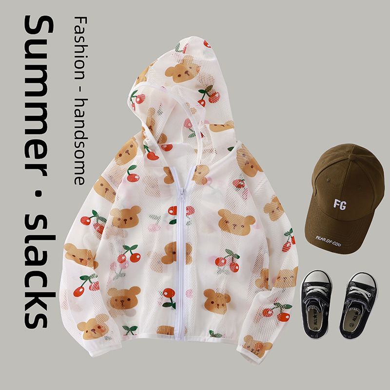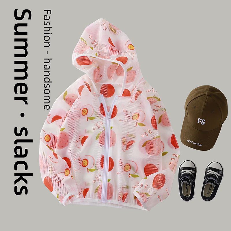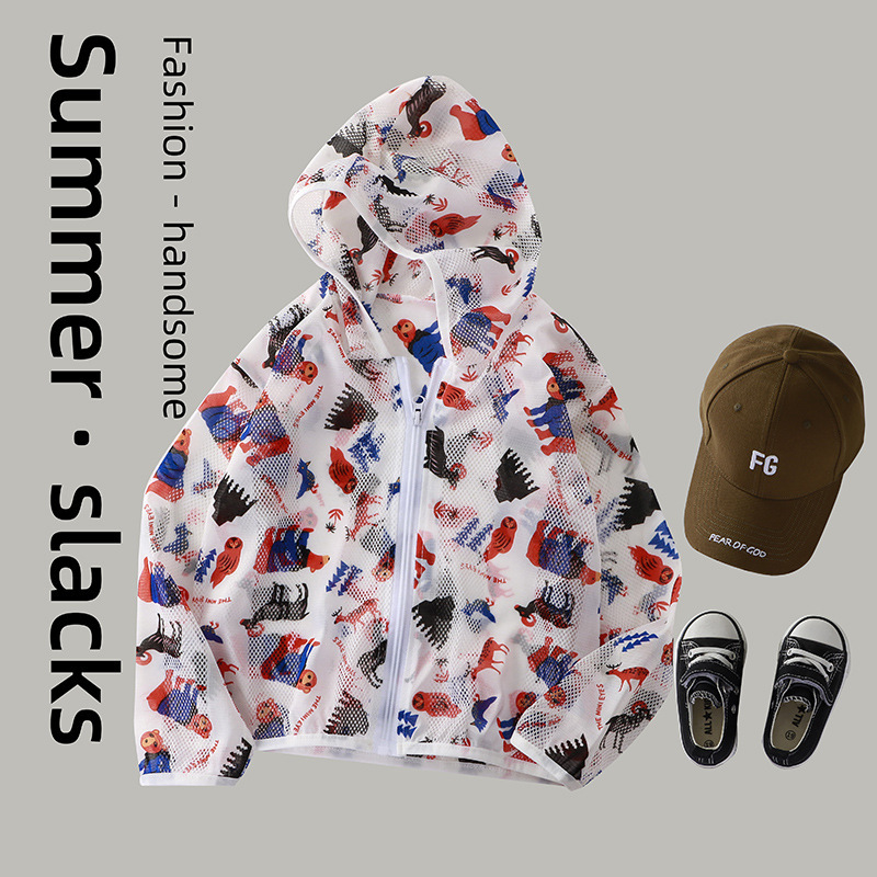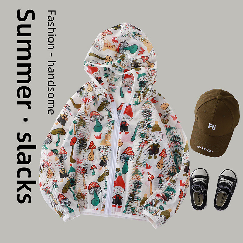 어린이 선 스크린 의류 여름 후드 코트 얇은 아기의 선 스크린 셔츠 메쉬 통기성 소년 및 소녀 에어컨 셔츠