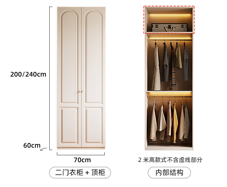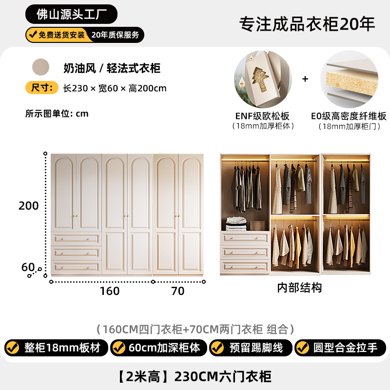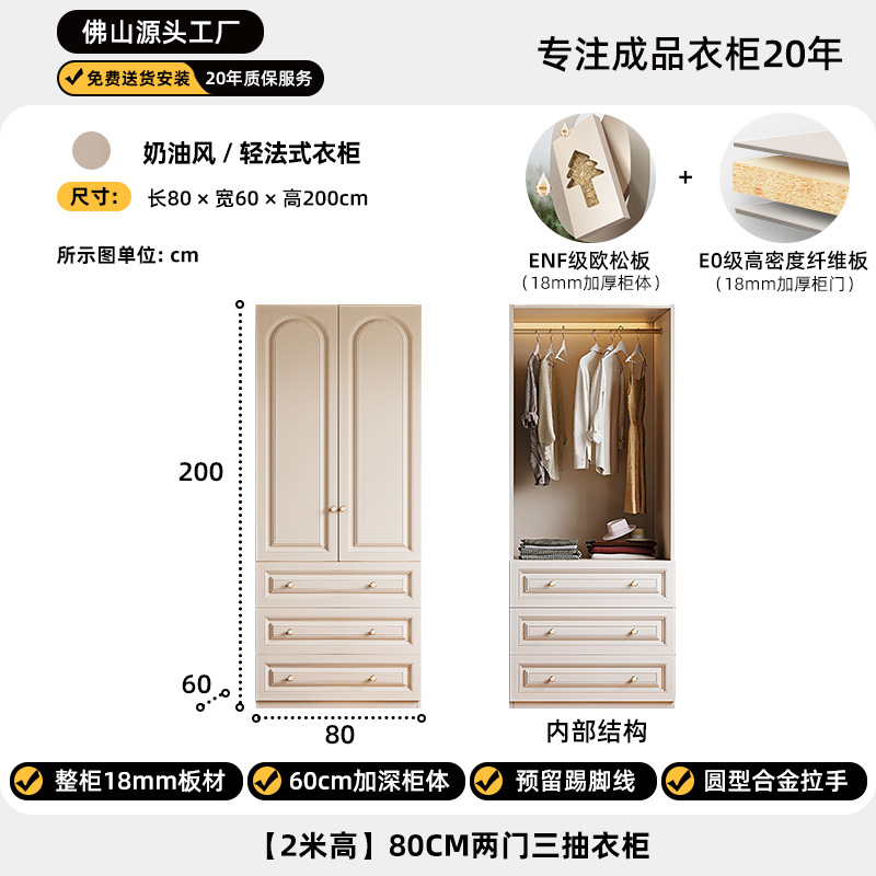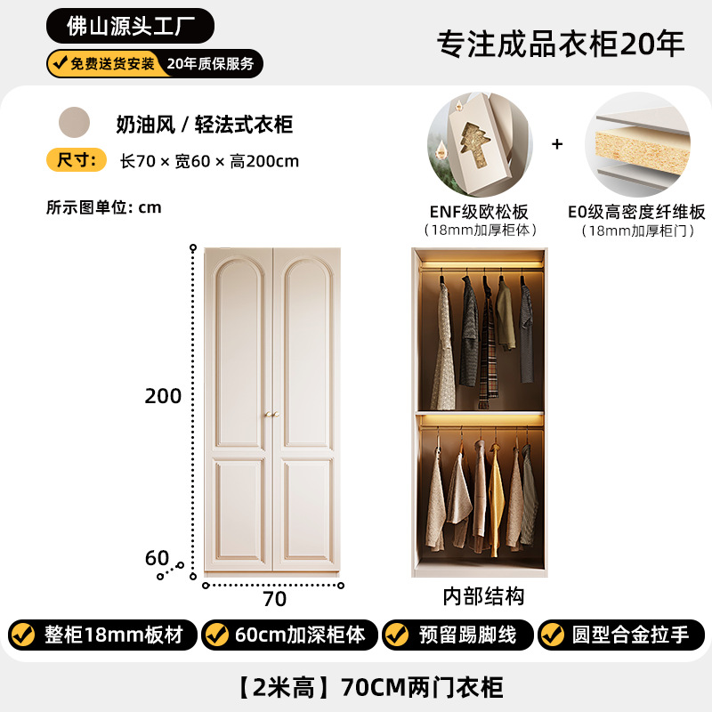 크림 스타일 옷장 도어 투 탑 침실 의류 보관 캐비닛 현대 간단한 가정용 경제적 인 흰색 옷장