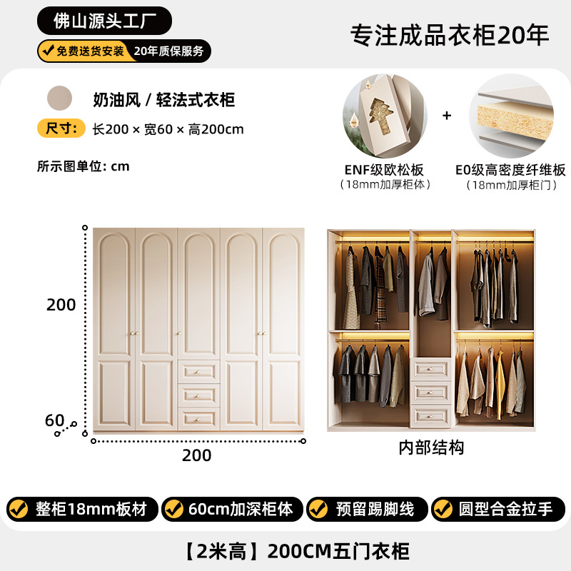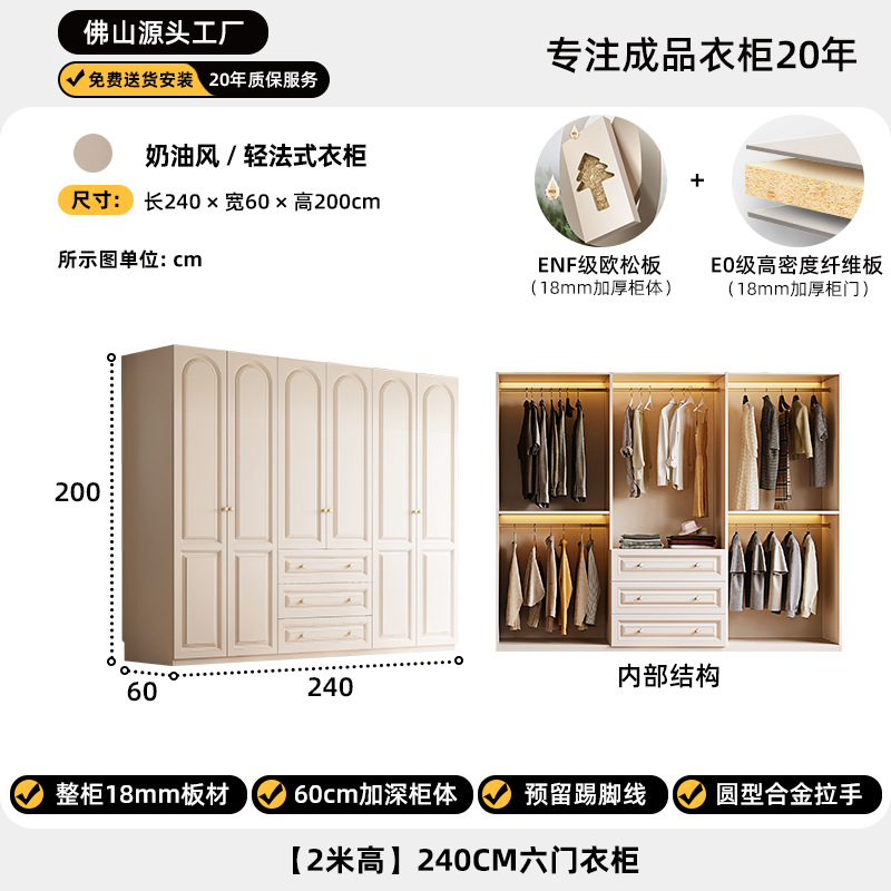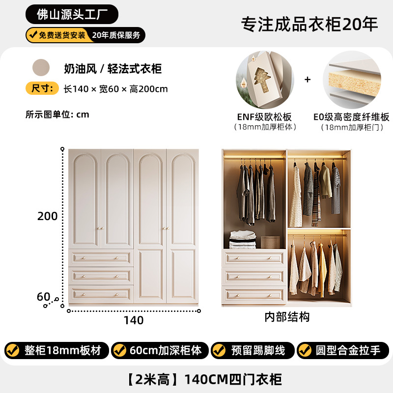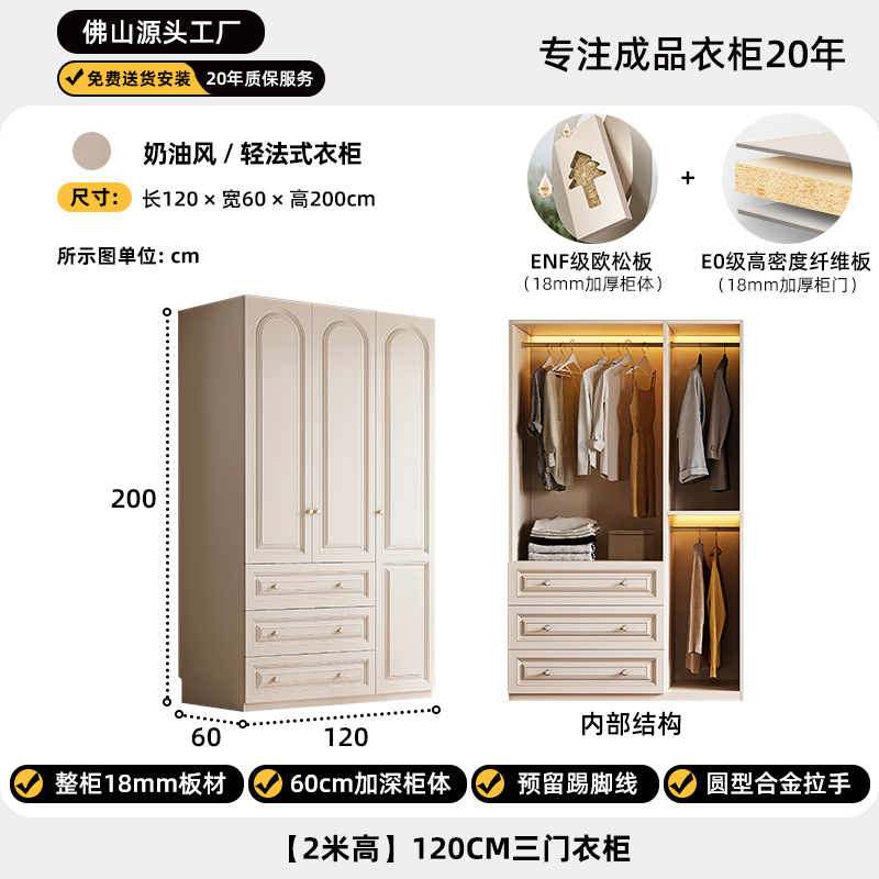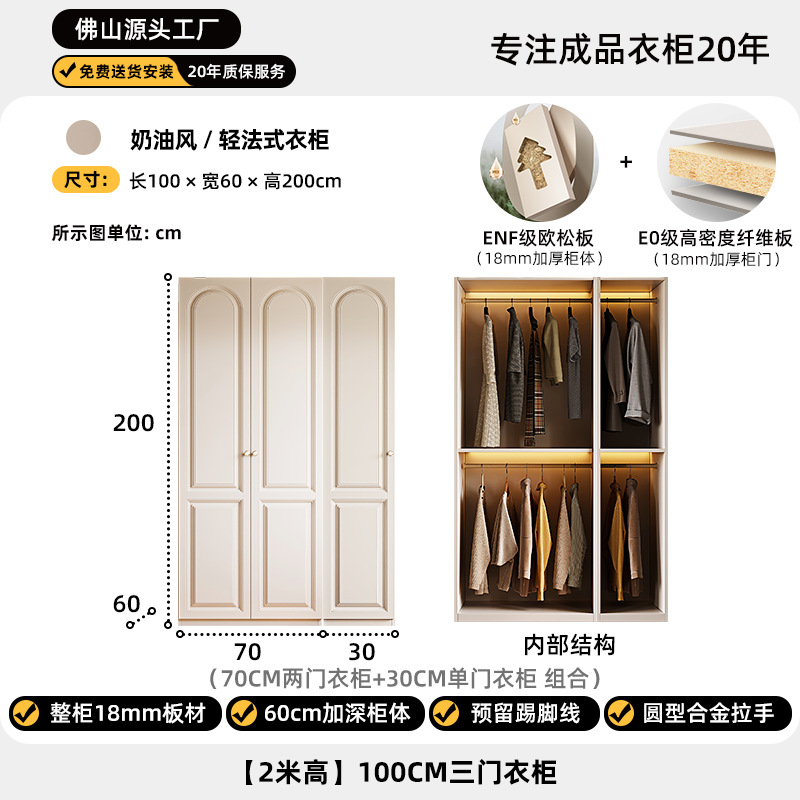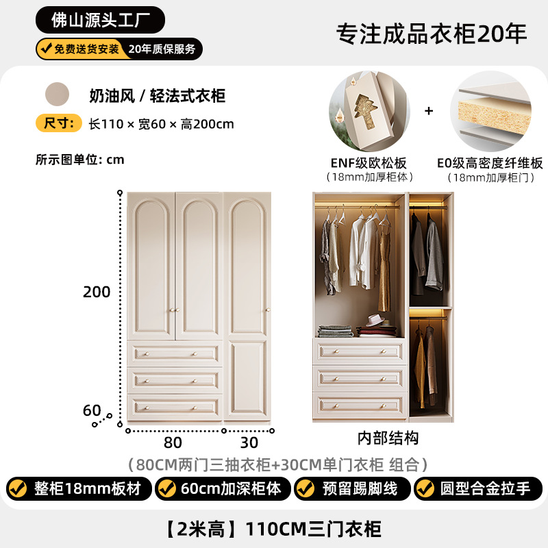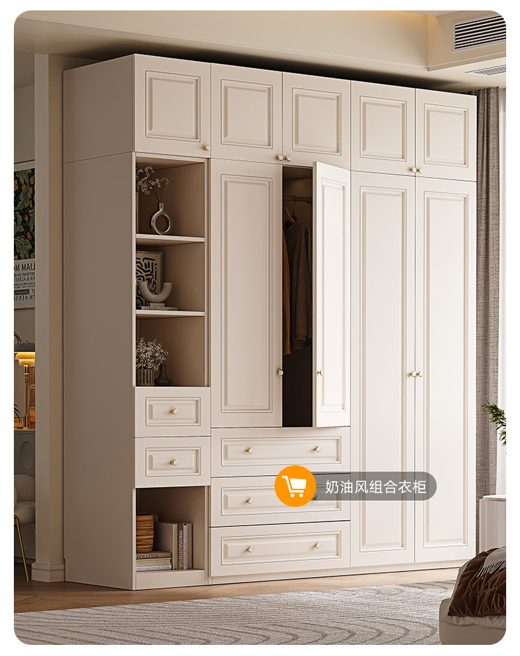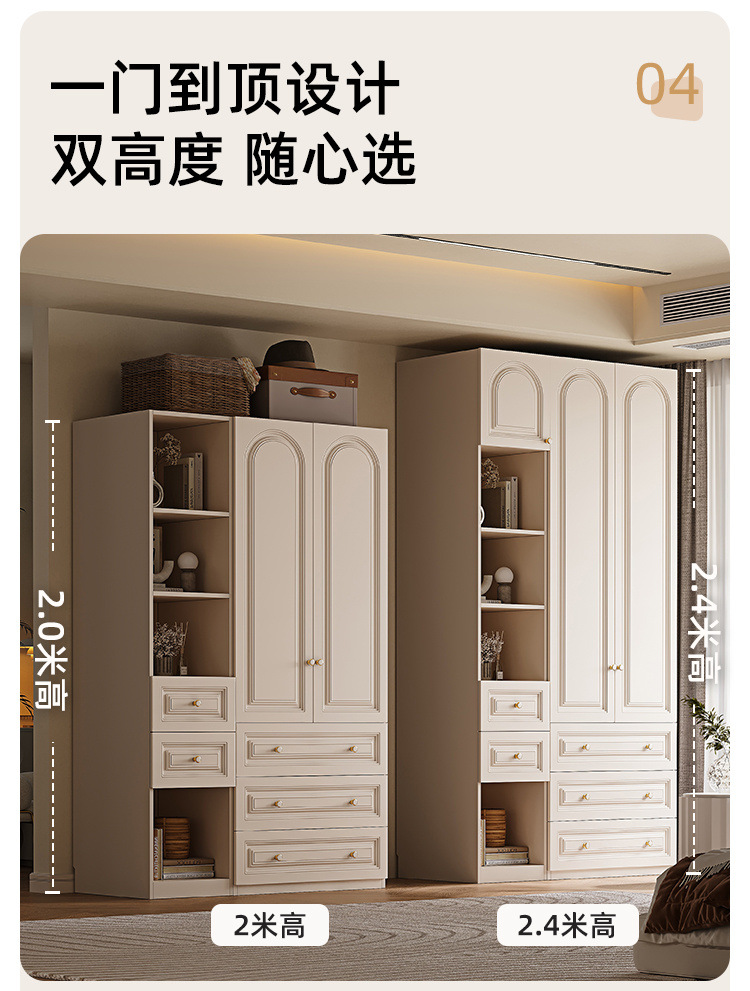 크림 스타일 옷장 도어 투 탑 침실 의류 보관 캐비닛 현대 간단한 가정용 경제적 인 흰색 옷장스토어 가기