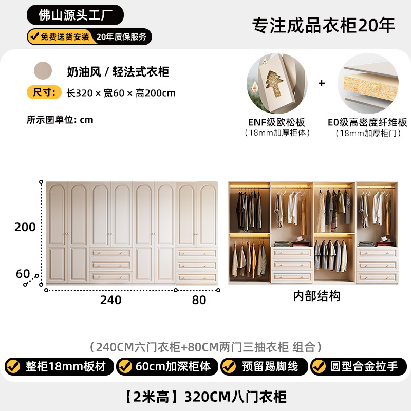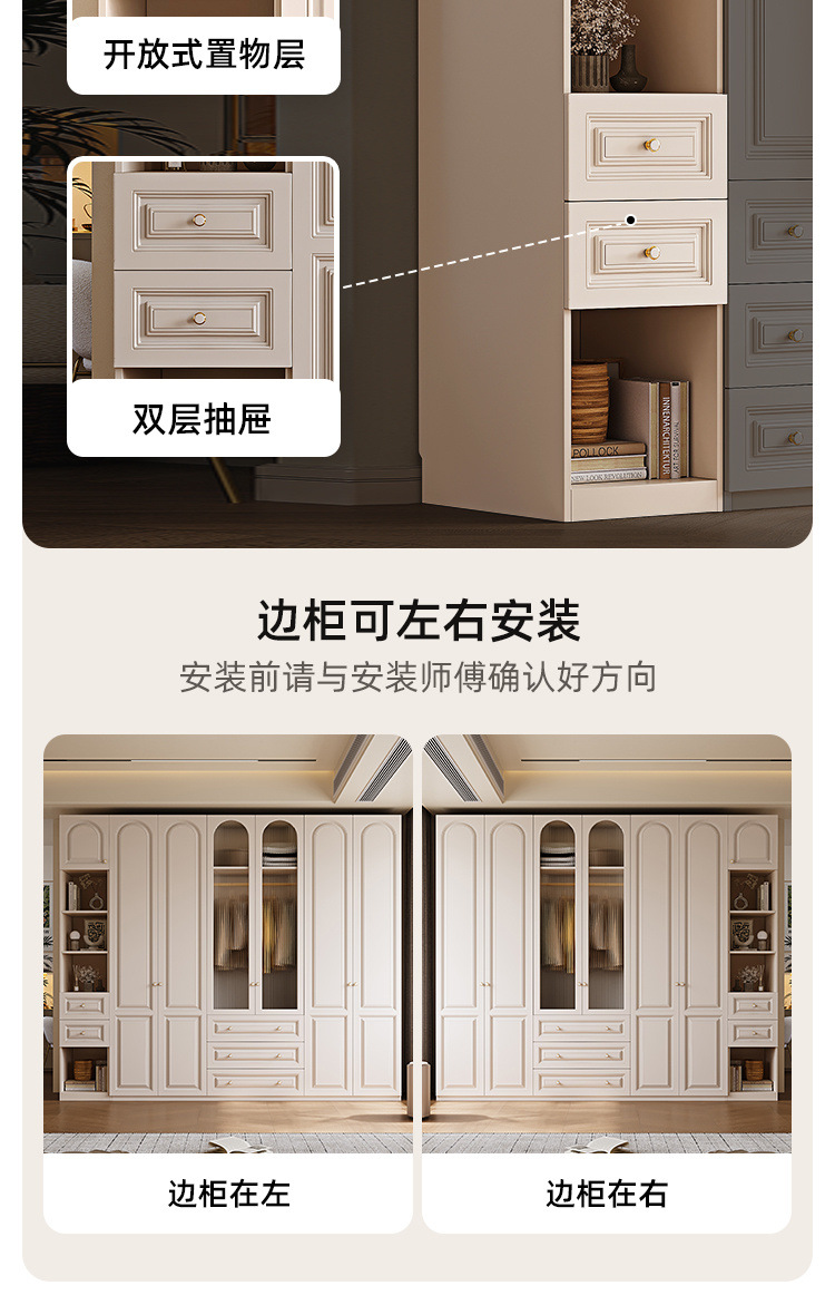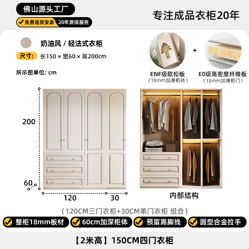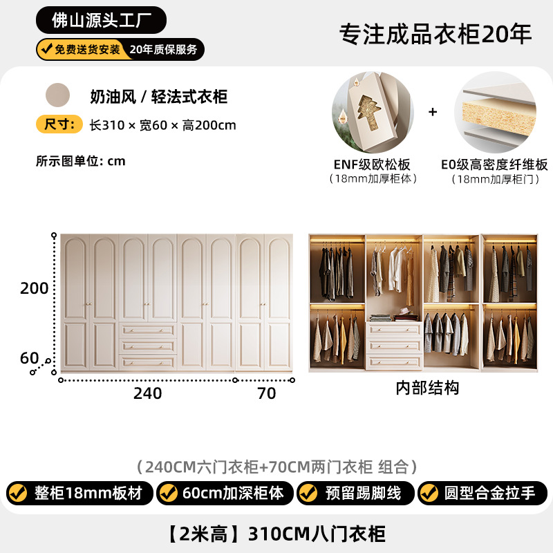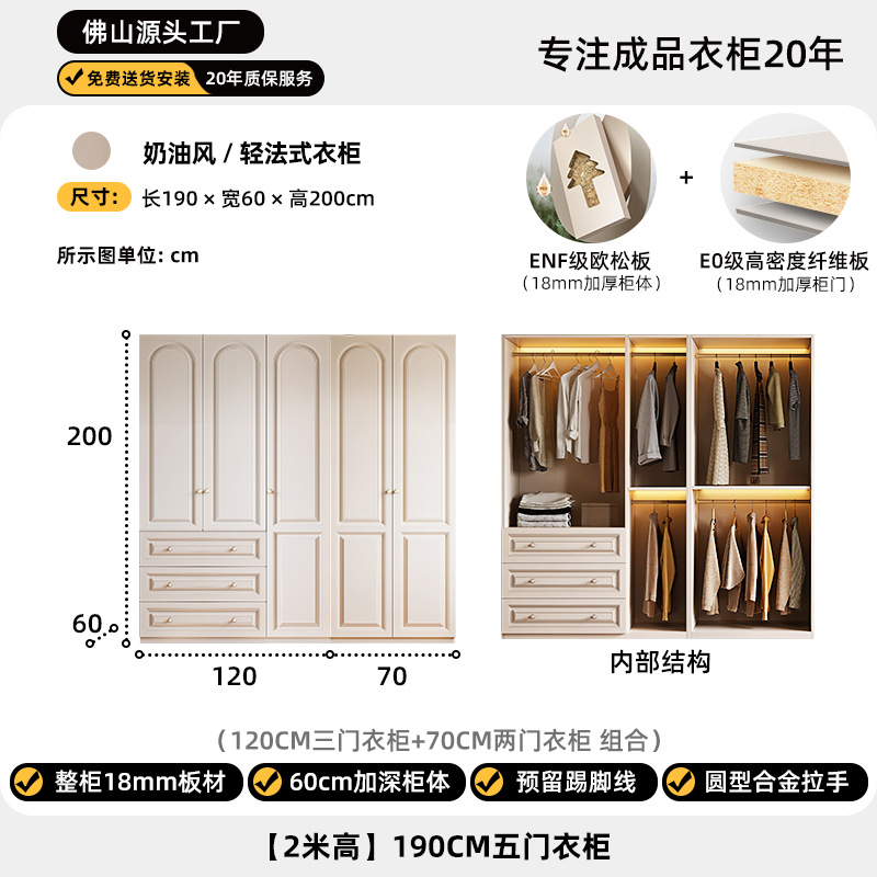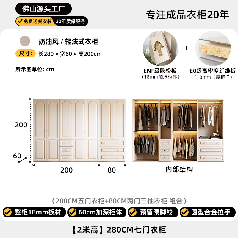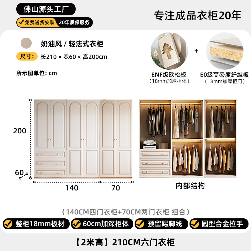 크림 스타일 옷장 도어 투 탑 침실 의류 보관 캐비닛 현대 간단한 가정용 경제적 인 흰색 옷장스토어 가기