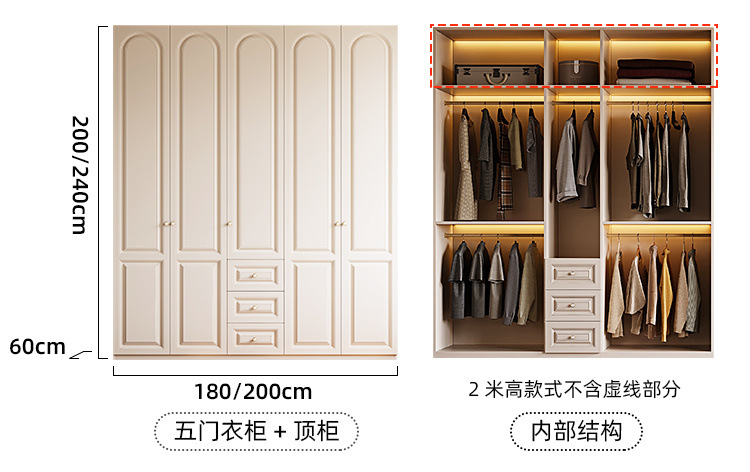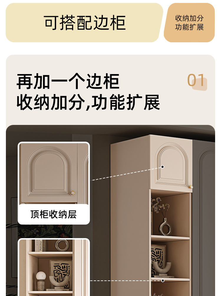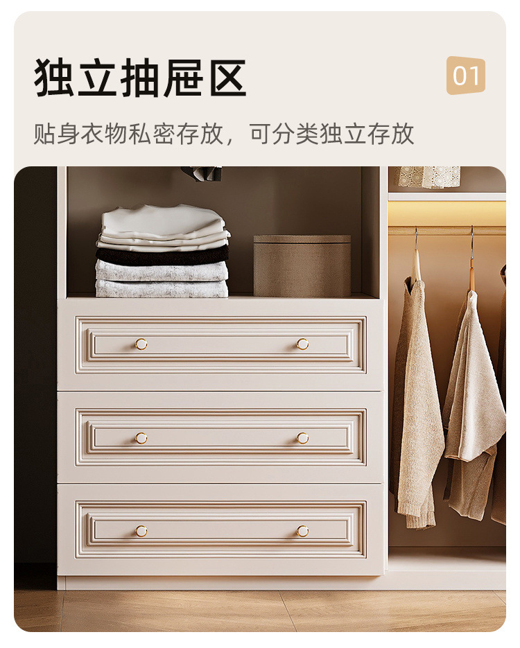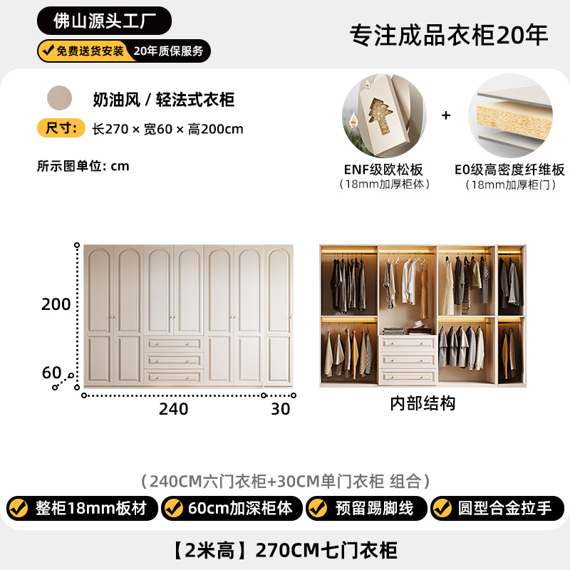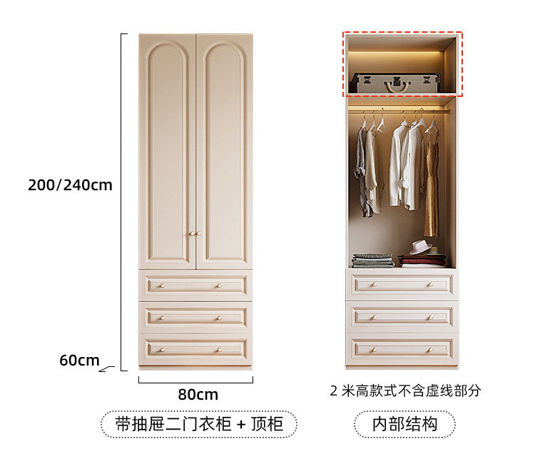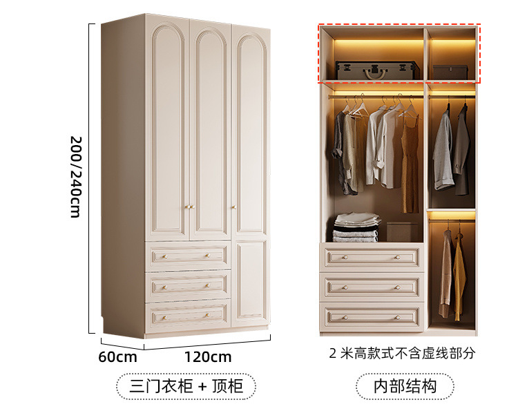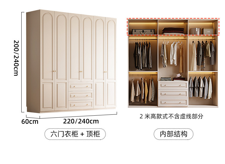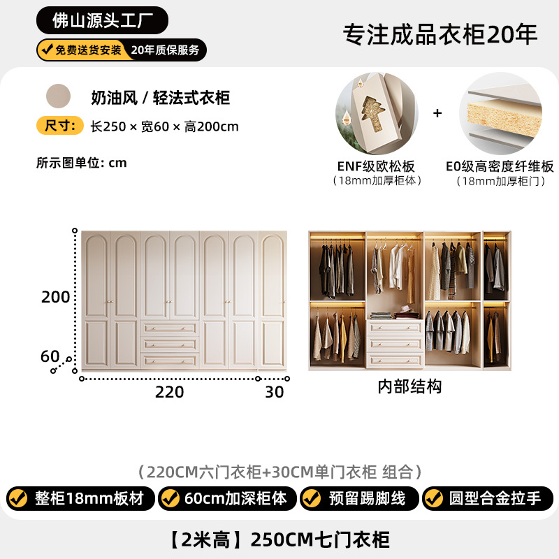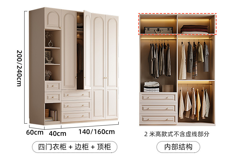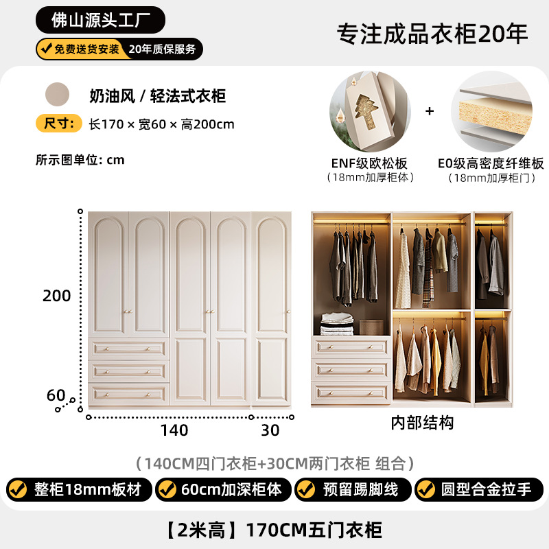 크림 스타일 옷장 도어 투 탑 침실 의류 보관 캐비닛 현대 간단한 가정용 경제적 인 흰색 옷장스토어 가기