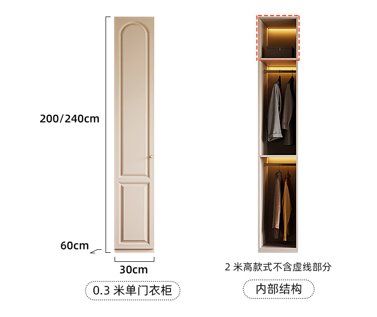 • 0.3m 단일 도어 옷장 - 전체 캐비닛 18mm 두꺼운 판