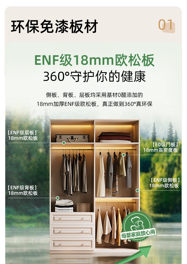 • 0.8m 2도어 및 서랍 3개 옷장 - 전체 캐비닛 18mm 두께의 플레이트