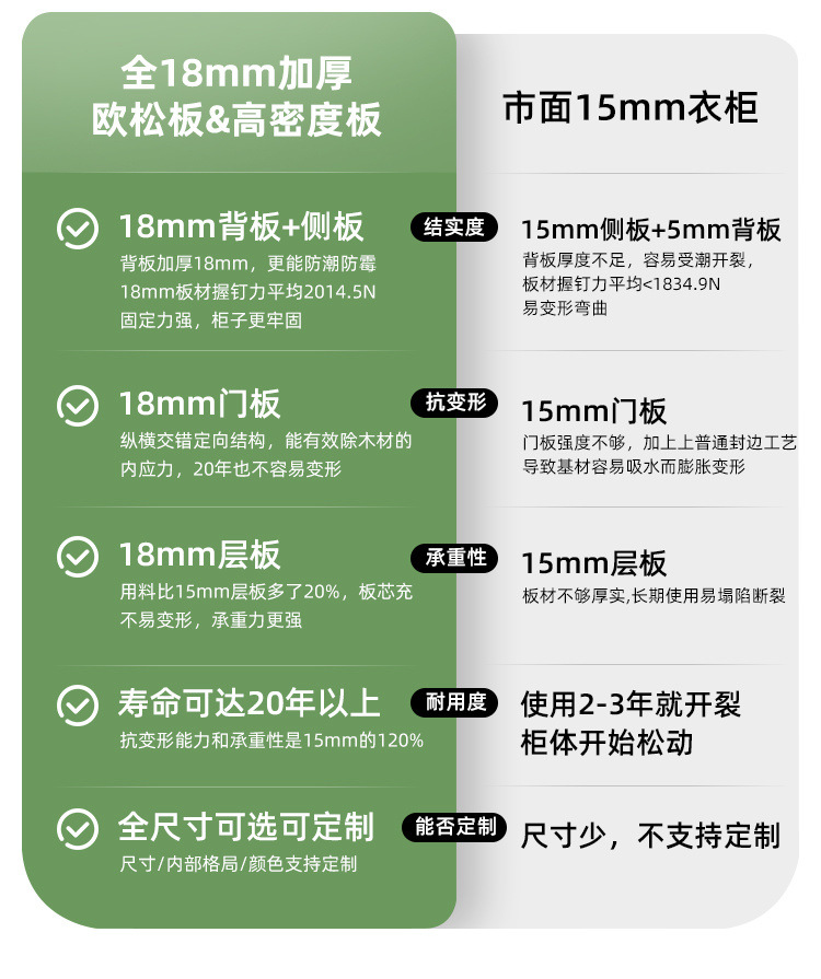 • 1.8m 도어 옷장 - 전체 캐비닛 18mm 두꺼운 판