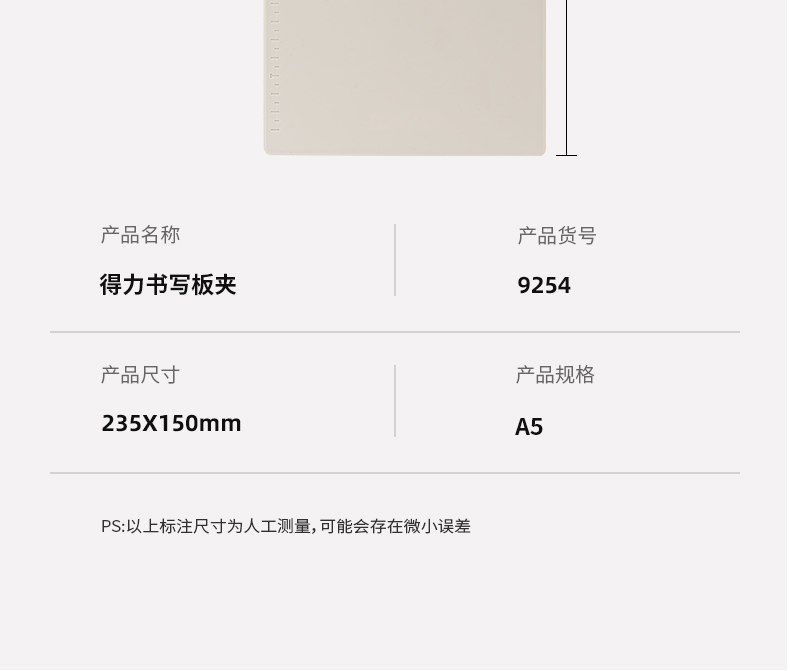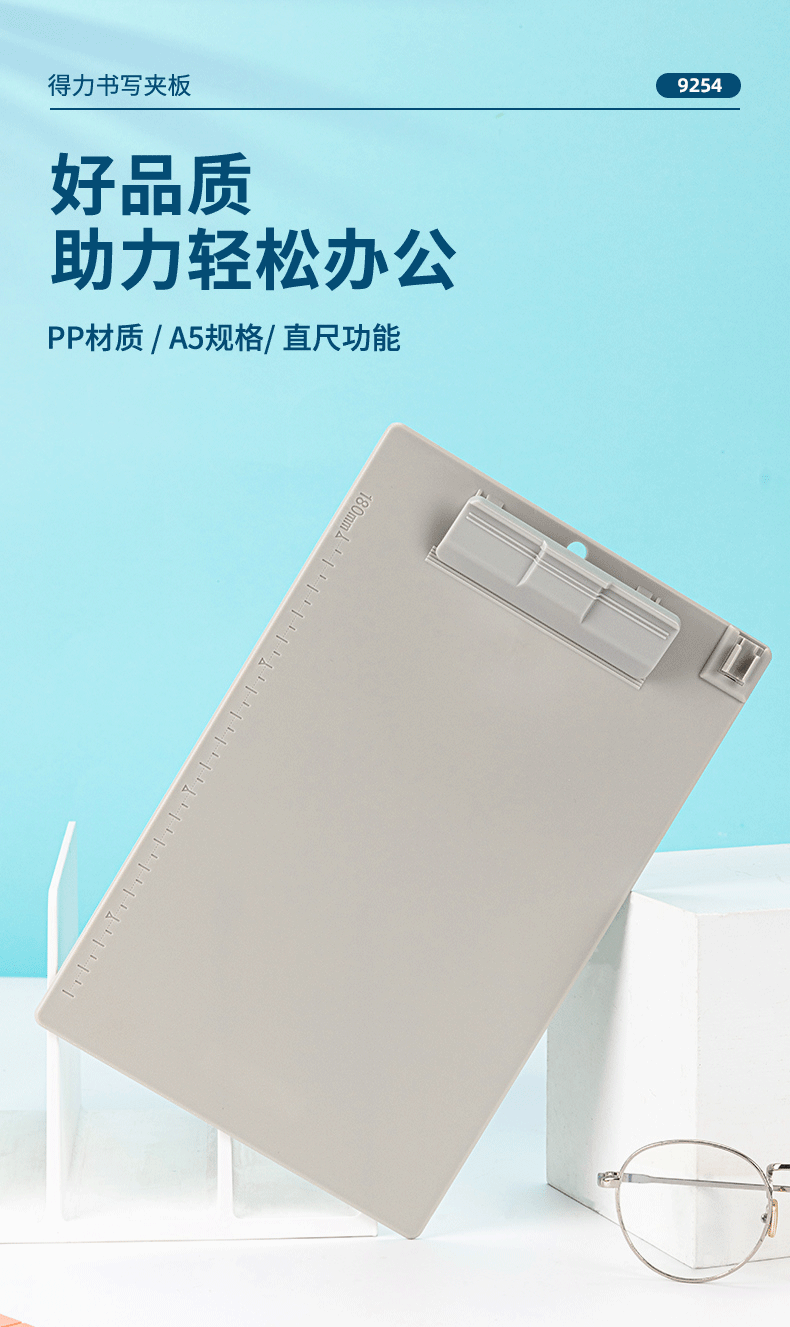 델리 9254 쓰기 보드 클립 A5 쓰기 패드 오프 화이트 플라스틱 문서 부목 회의 스케치 보드스토어 가기