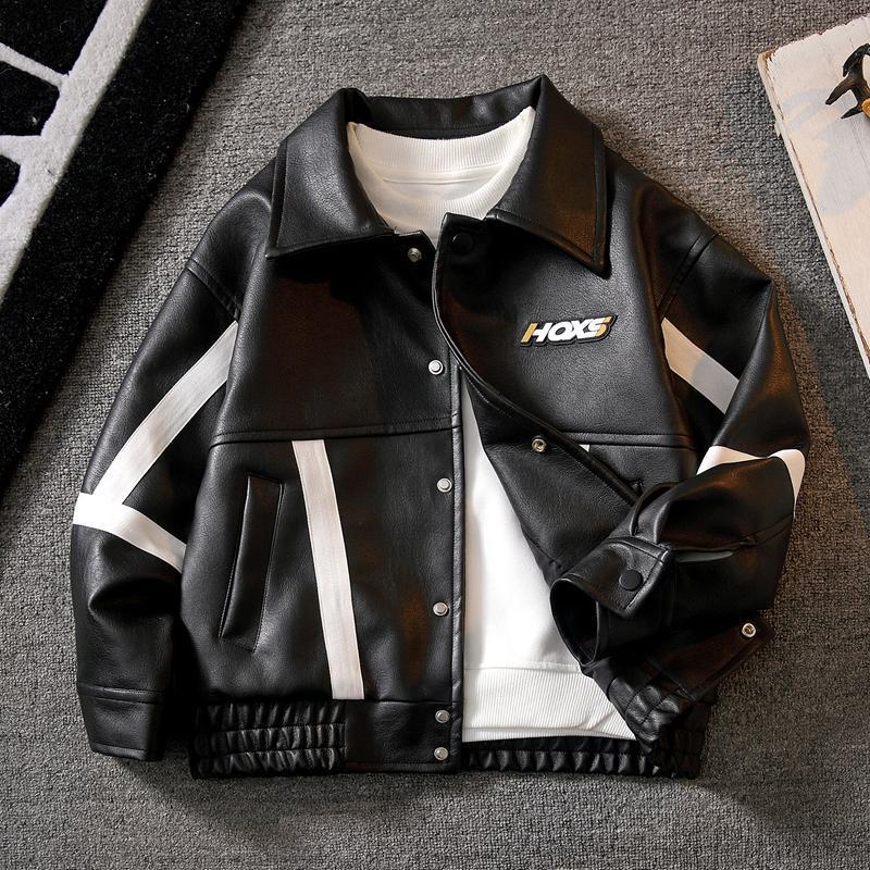 어린이 의류 소년 코트 봄과 가을 2024 새로운 중대형 어린이 가죽 코트 가을 옷 가을 멋진 잘 생긴 소년 트렌디스토어 가기