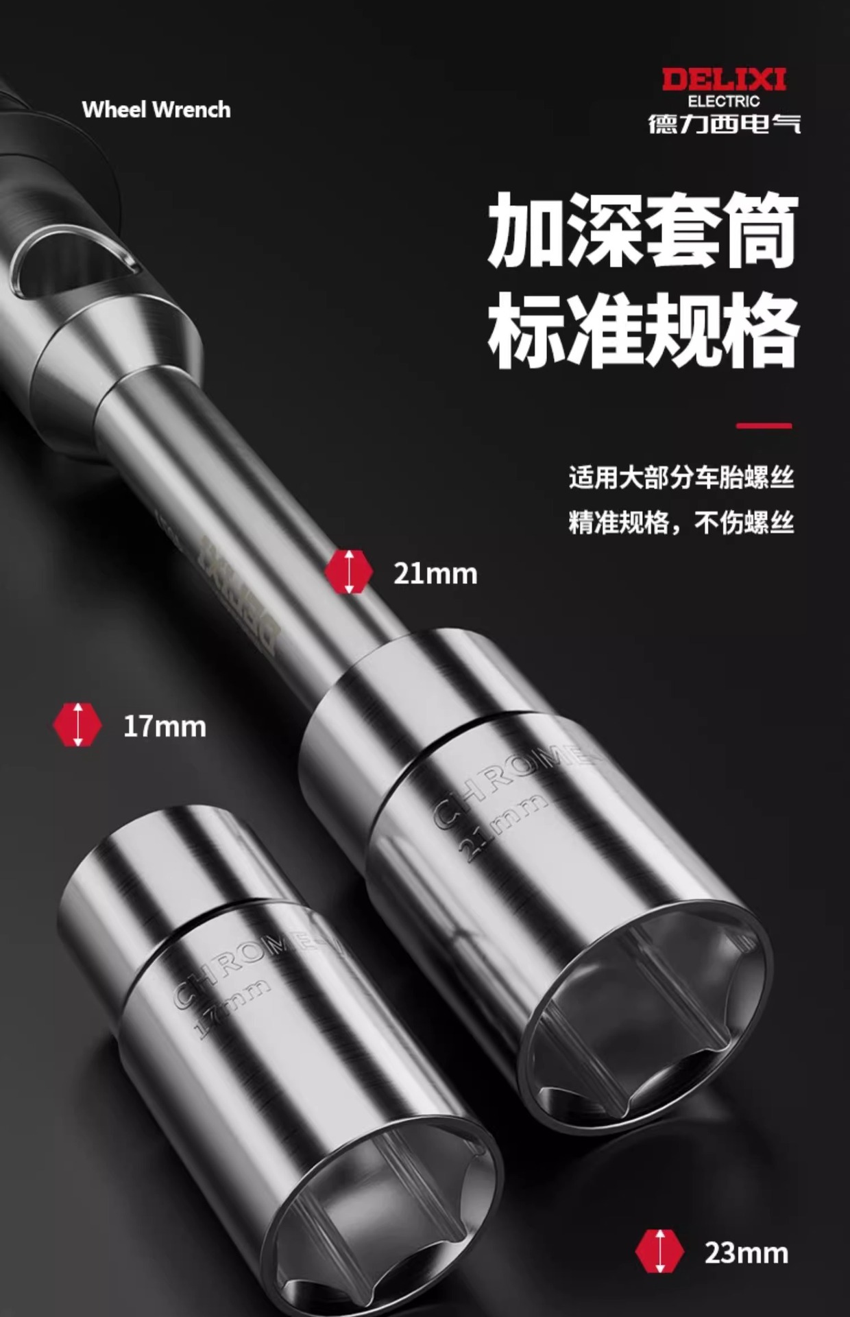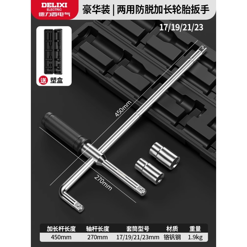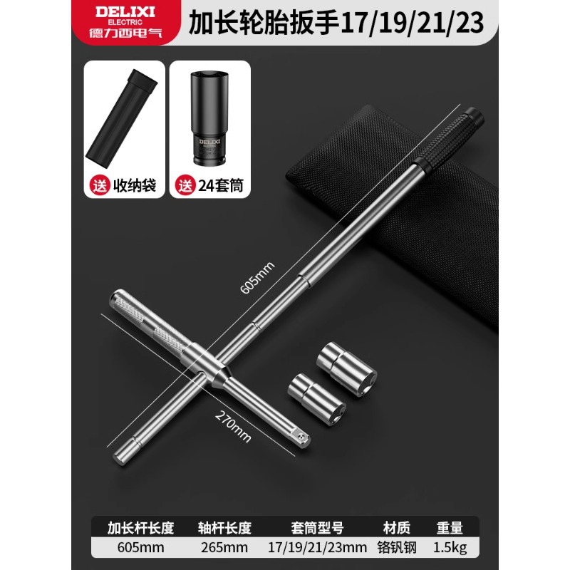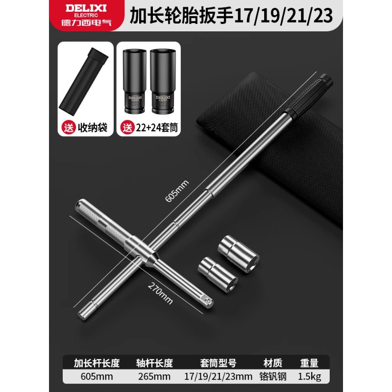 • Delixi 확장 타이어 렌치 17 19 21 23 + [24 소켓] (수납 가방 포함)