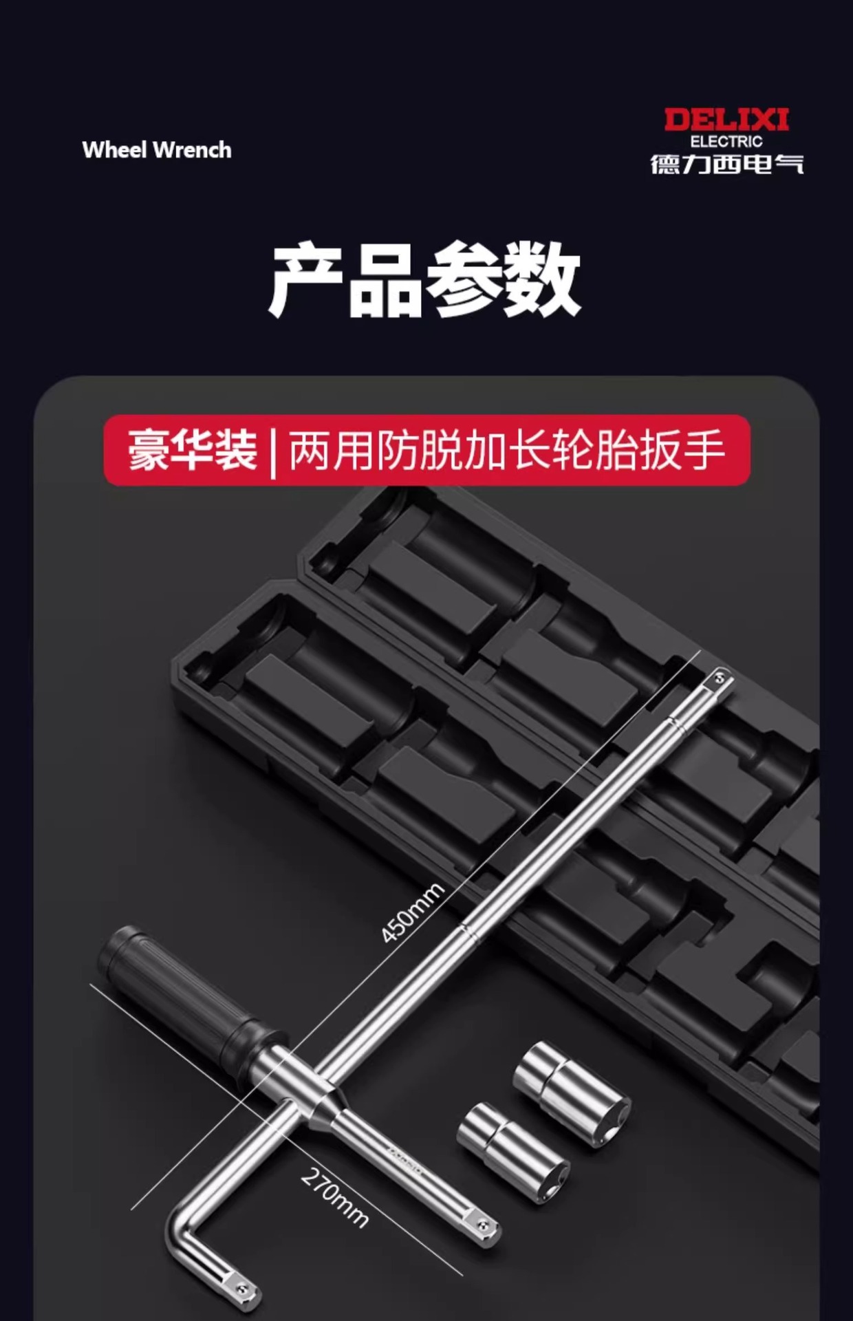 • Delixi [럭셔리 패키지] 이중 목적 낙하 방지 확장 노동 절약형 타이어 렌치 + [소켓 22개] (보관함 포함)