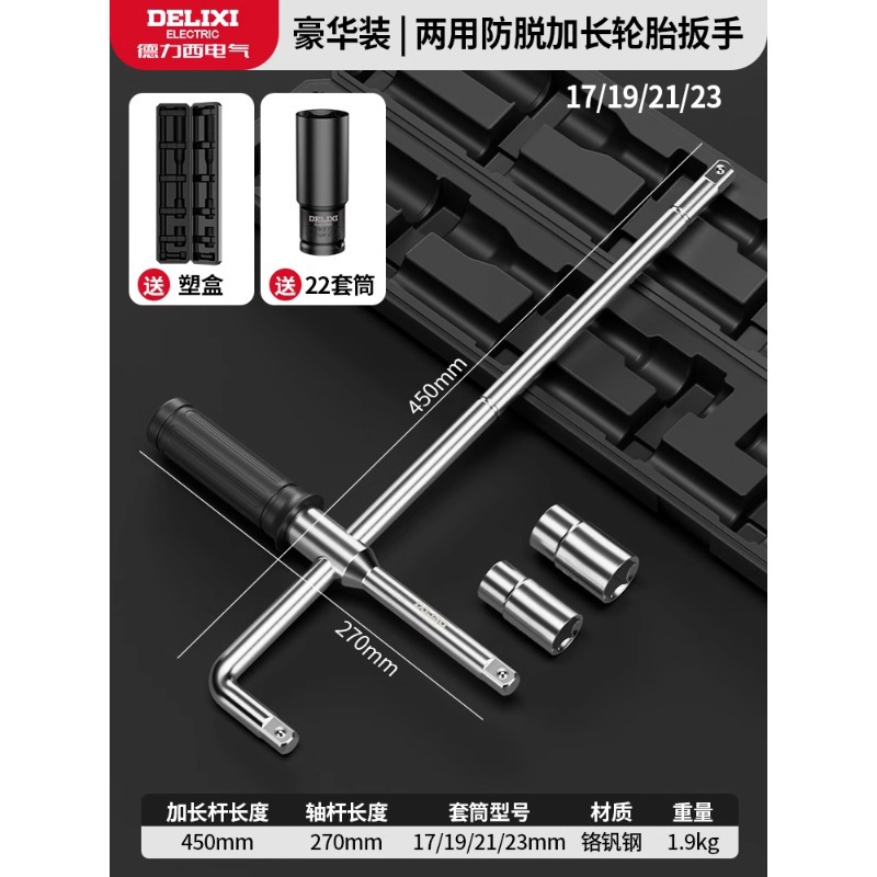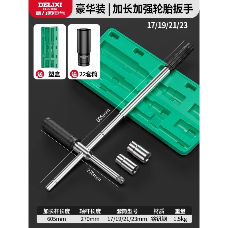 • Delixi [럭셔리 패키지] 확장형 강화 타이어 렌치 + [22소켓] (수납함 포함)