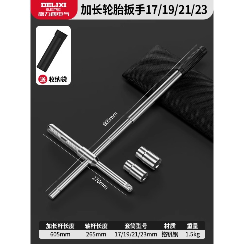• Delixi 확장 타이어 렌치 17 19 21 23 + [22 소켓] (수납 가방 포함)