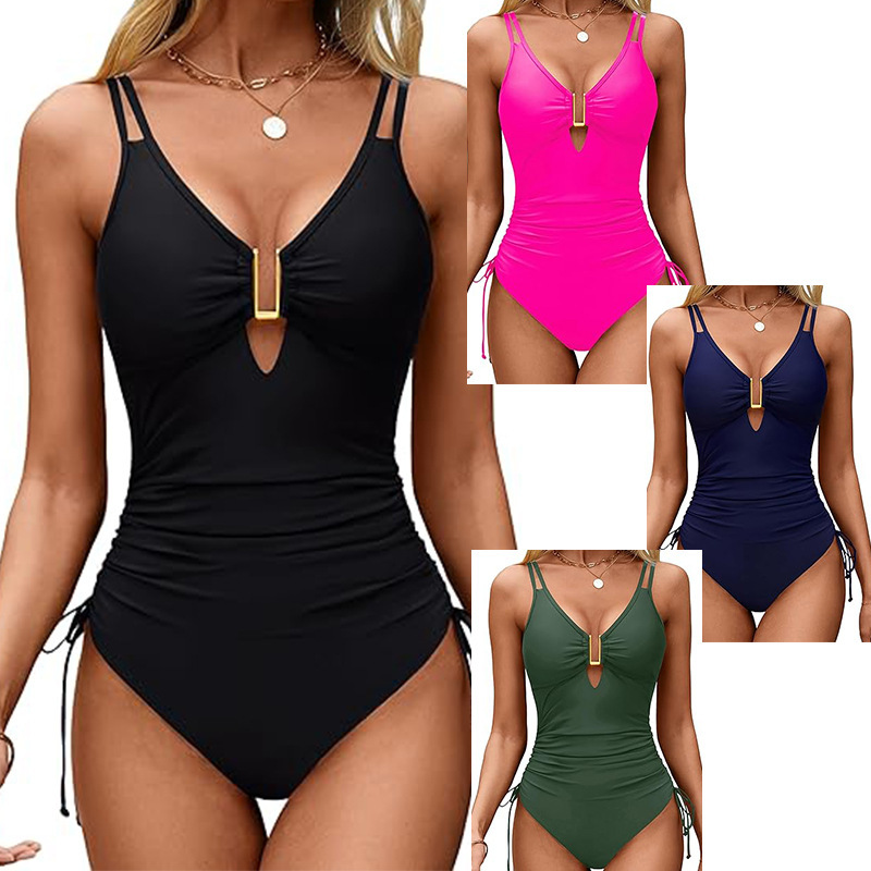 2025 국경 간 폭발 액세서리 디자인 유럽과 미국의 단색 아마존 패션 섹시한 하이 엔드 수영복 여성 원바디스토어 가기