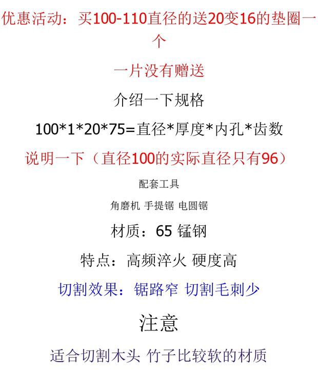 100-110mm 망간 스틸 톱날 전기 원형 톱 앵글 그라인더 톱은 나무 모소 대나무 톱날 절단 블레이드스토어 가기