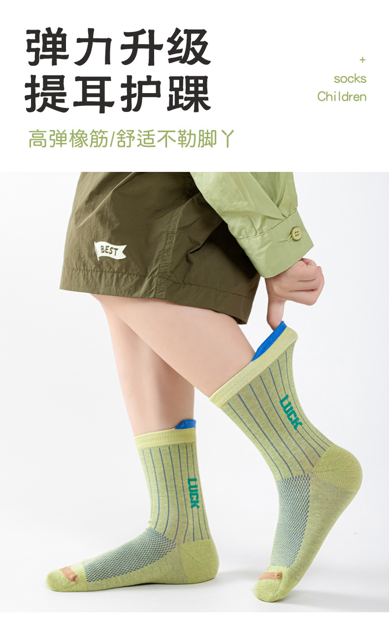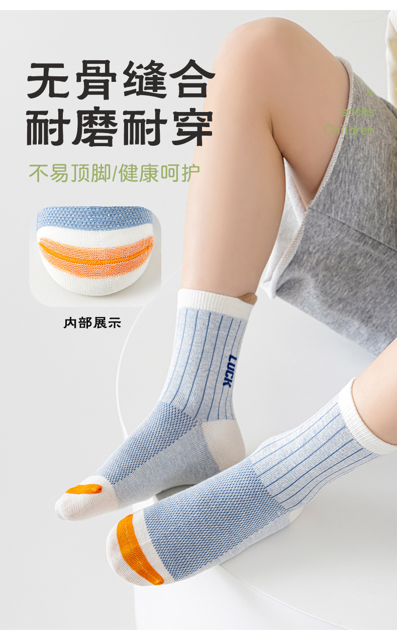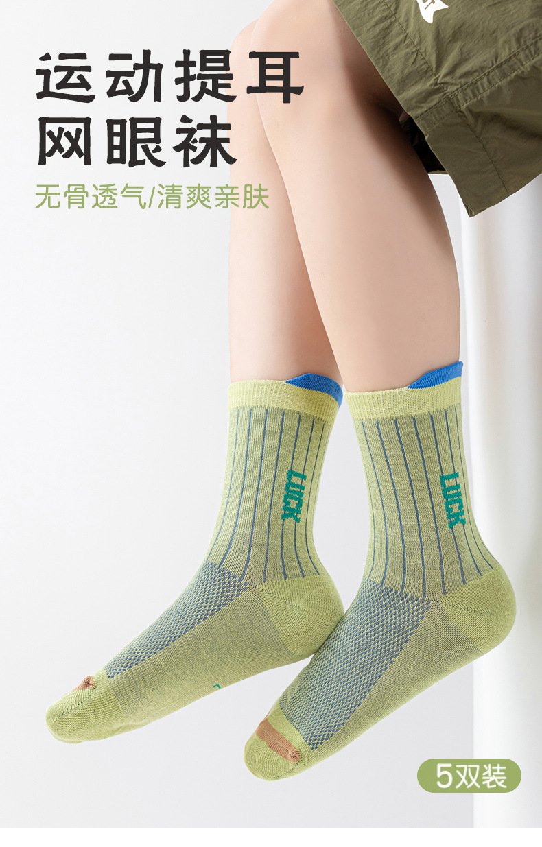 어린이 양말 봄 여름용 얇은 메쉬 무봉제 면 양말 남아 청소년 농구 스포츠 중목 양말