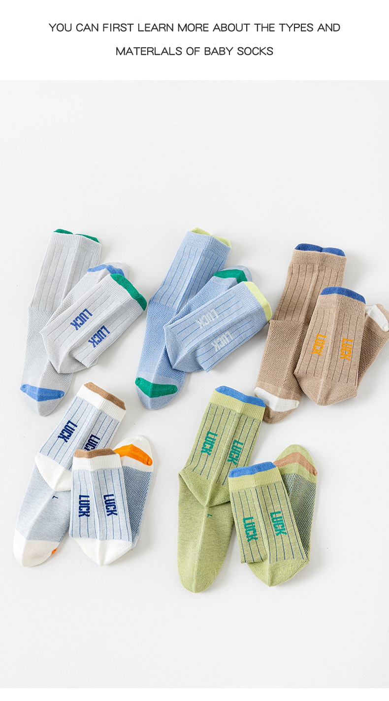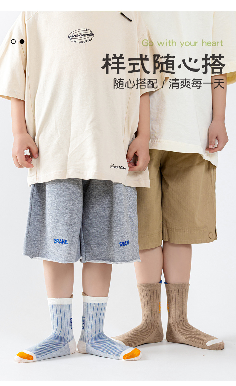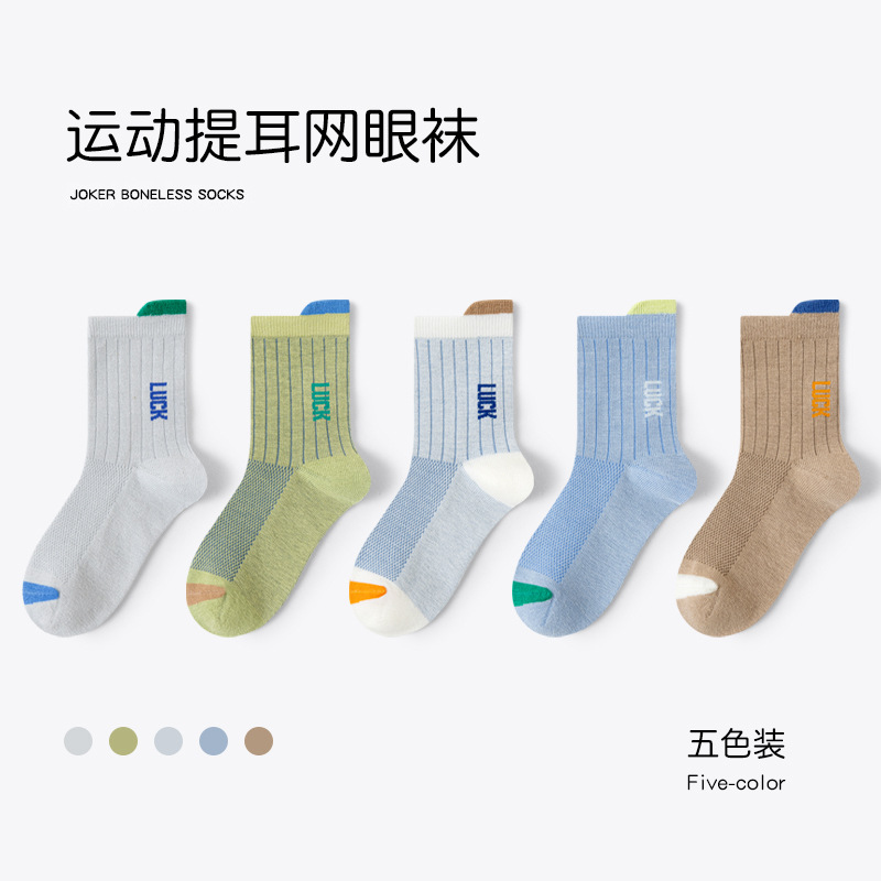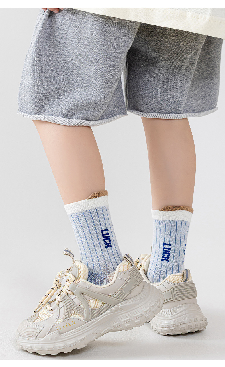 어린이 양말 봄 여름용 얇은 메쉬 무봉제 면 양말 남아 청소년 농구 스포츠 중목 양말