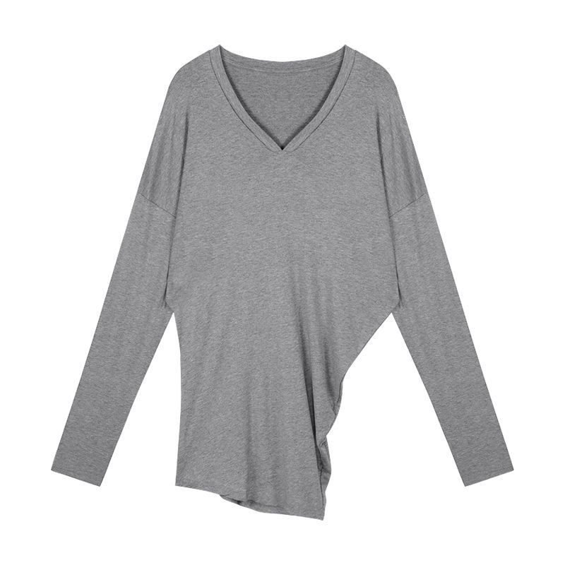 Duoqi 멀티 컬러 V 넥 긴팔 느슨한 티셔츠 여성의 이른 봄과 여름 자외선 차단제 새로운 캐주얼 한국식 중간 길이 다용도