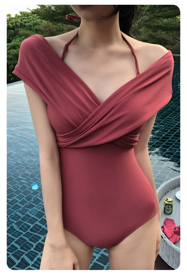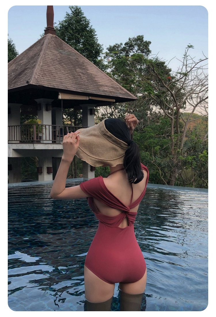 신형 동대문 수영복 섹시 백리스 배꼽 슬림 크로스 와이드 숄더스트랩 원피스 여성용 수영복스토어 가기