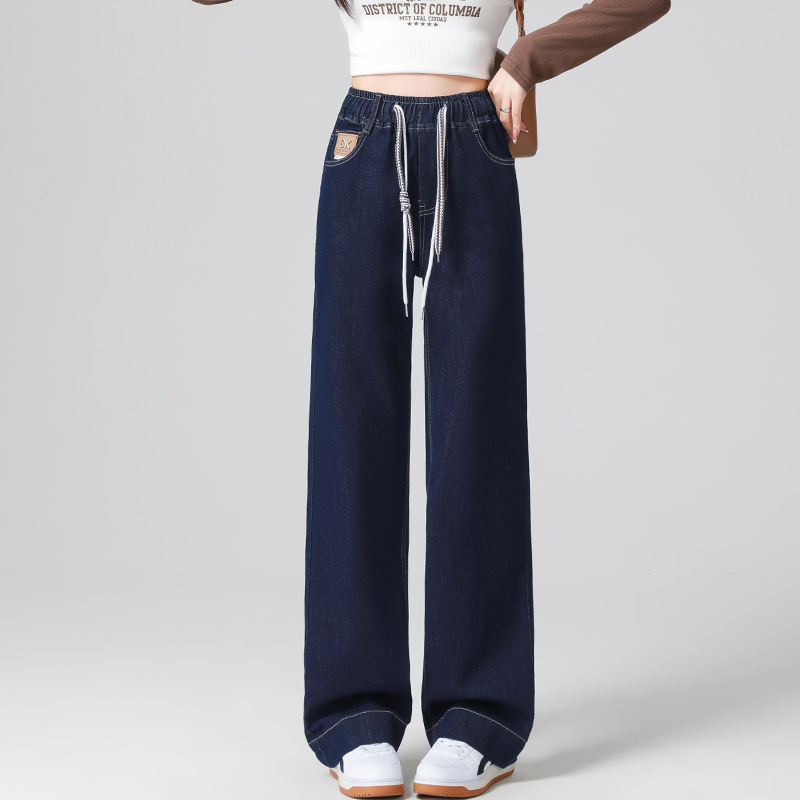 다크 블루 청바지 여성의 작은 이른 봄 착용 높은 허리 좁은 넓은 다리 바지 봄과 가을 높은 직선 바지
