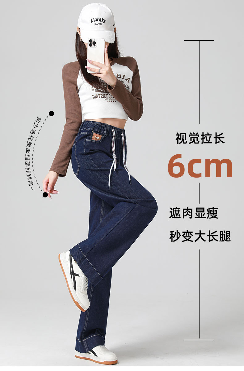 다크 블루 청바지 여성의 작은 이른 봄 착용 높은 허리 좁은 넓은 다리 바지 봄과 가을 높은 직선 바지스토어 가기