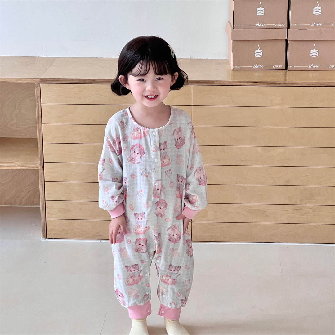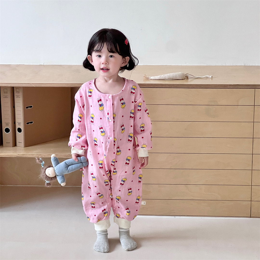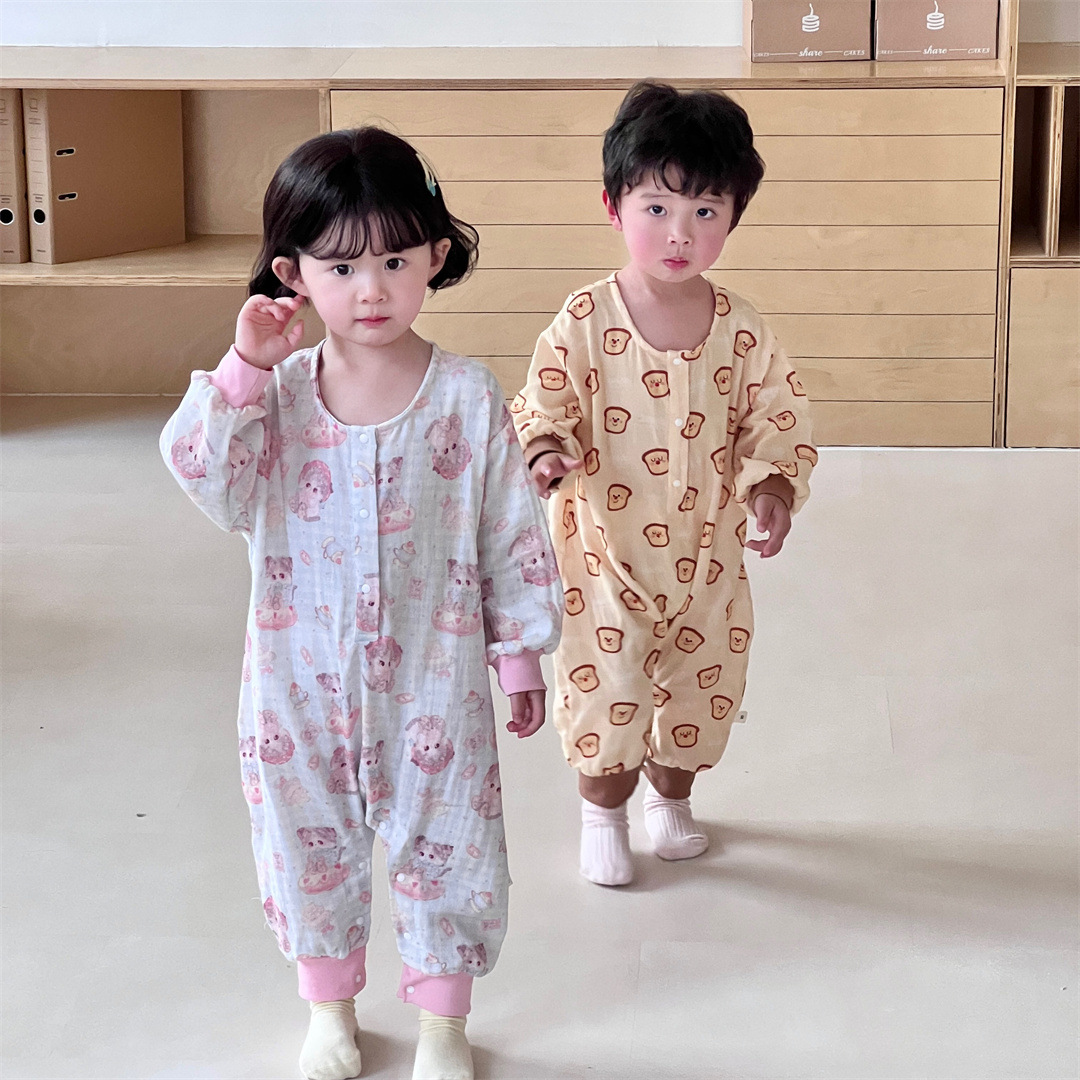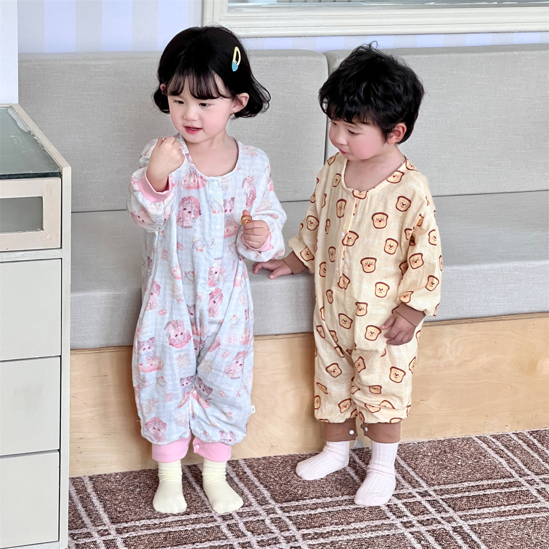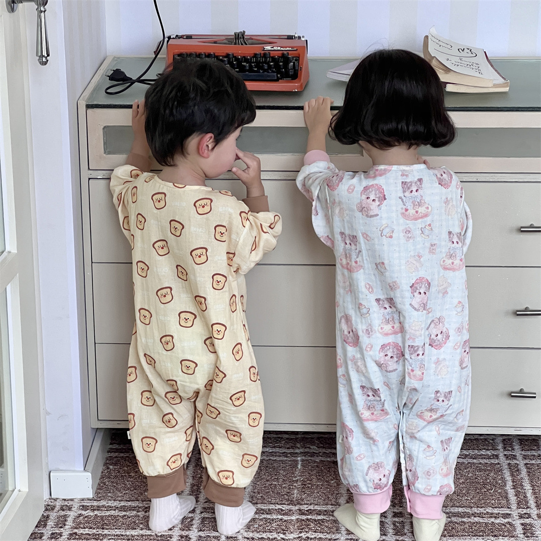 25 봄과 가을 얇은 어린이 슬리핑 백 더블 거즈 소년과 소녀를위한 긴 소매 슬리핑 백 에어컨 룸 다리 안티 킥 아티팩트스토어 가기