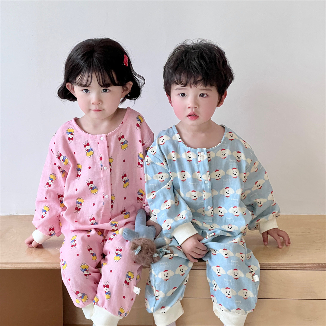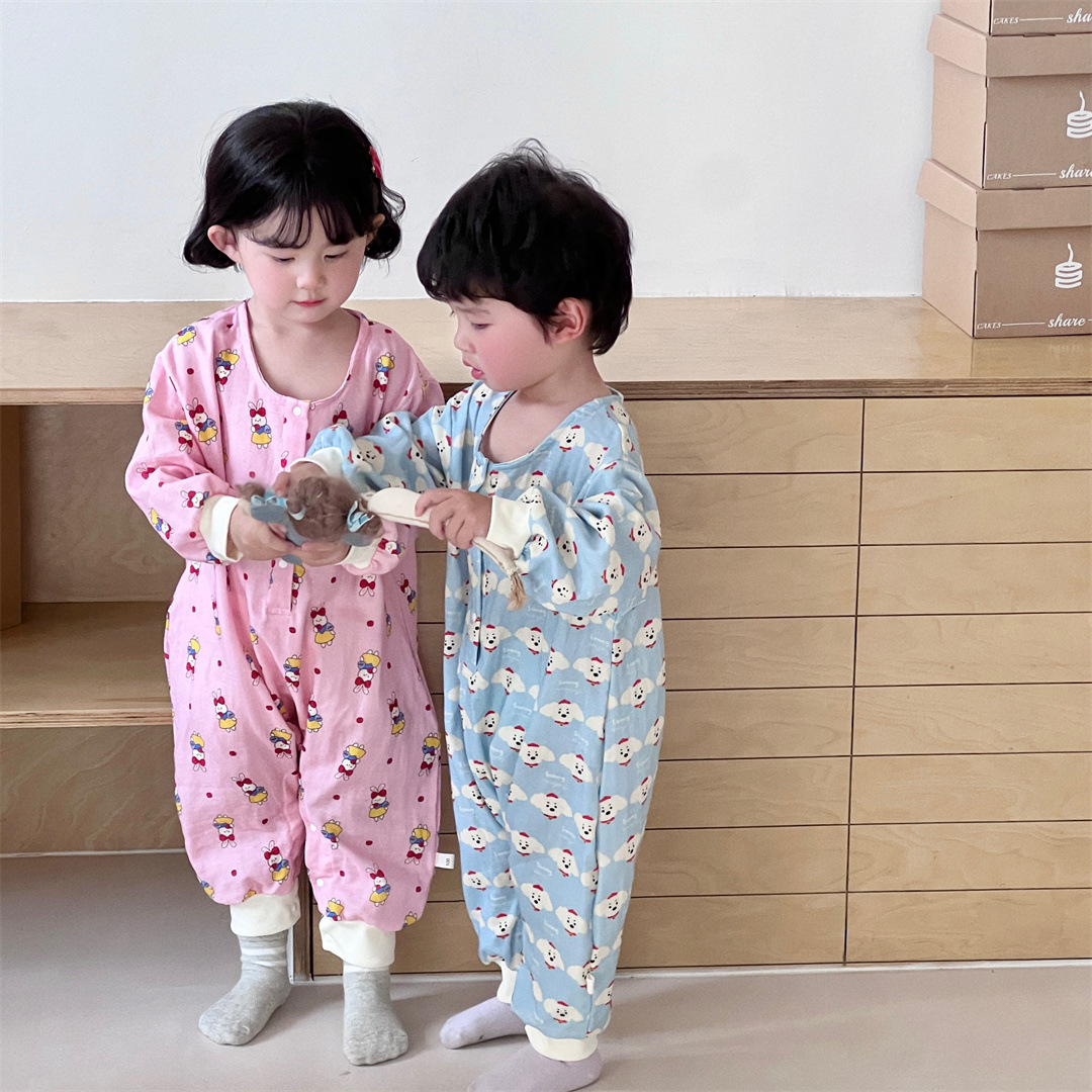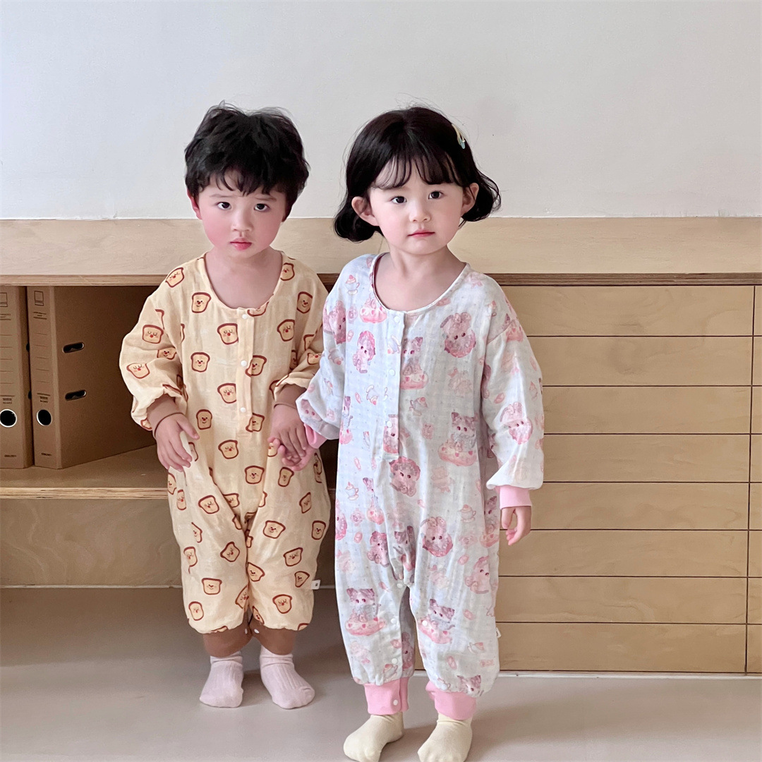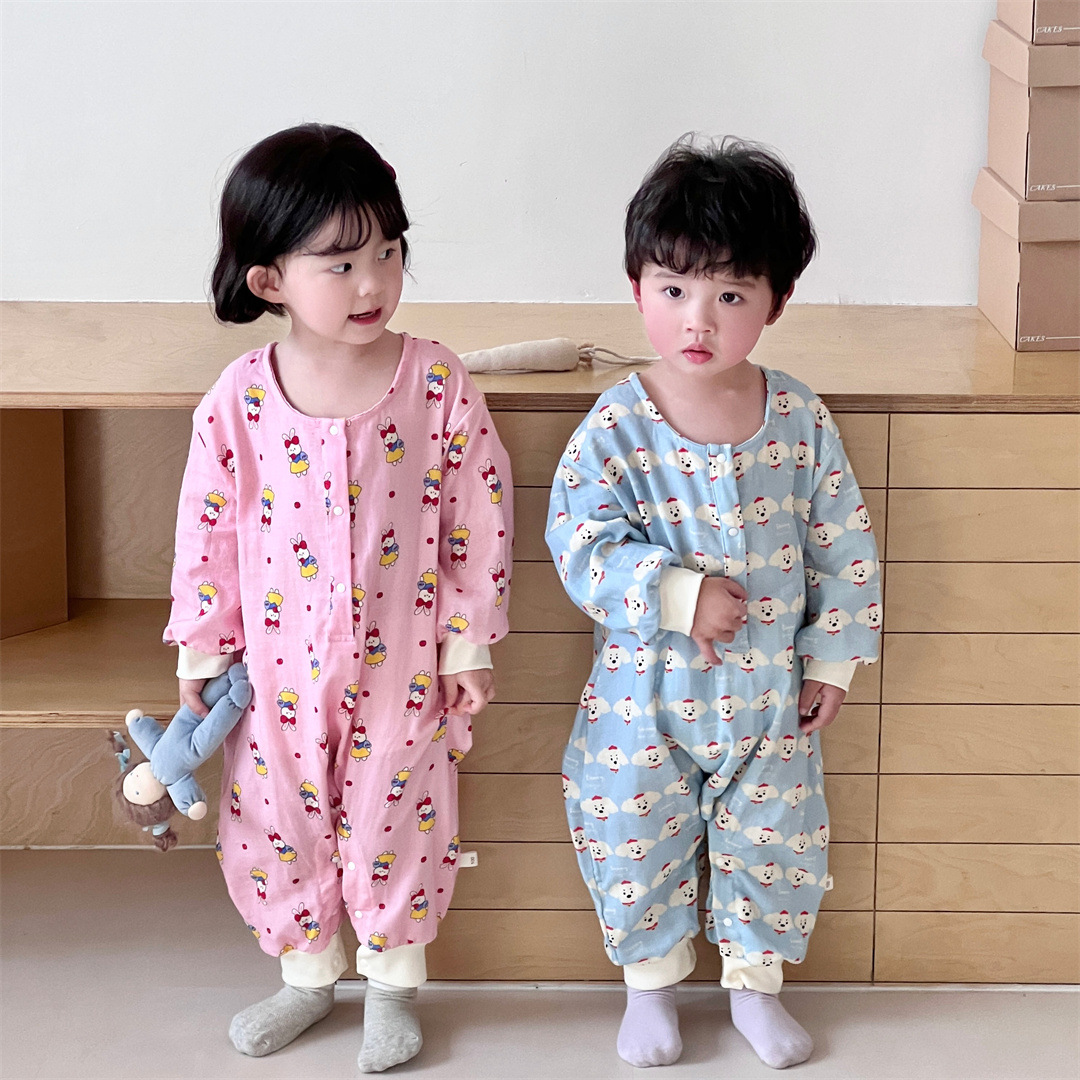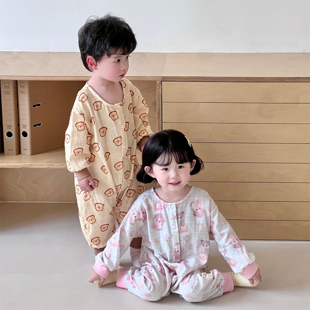 25 봄과 가을 얇은 어린이 슬리핑 백 더블 거즈 소년과 소녀를위한 긴 소매 슬리핑 백 에어컨 룸 다리 안티 킥 아티팩트스토어 가기