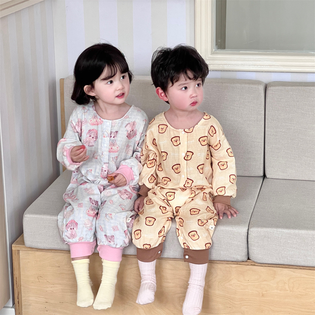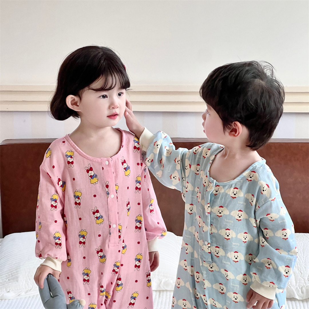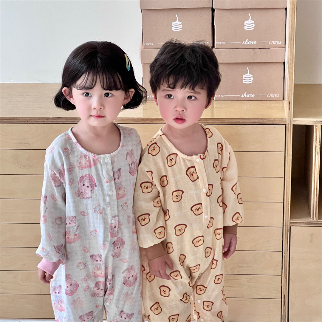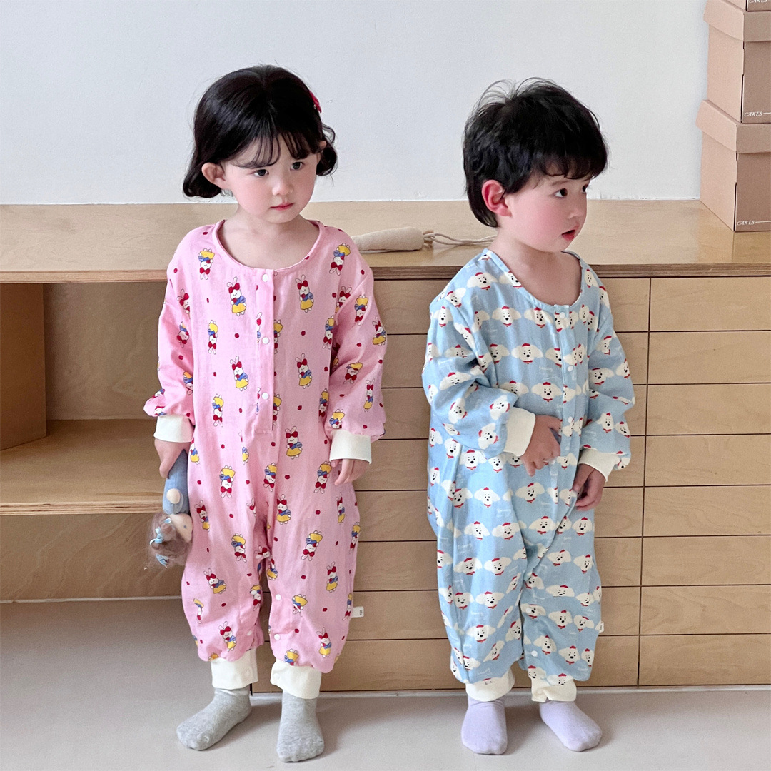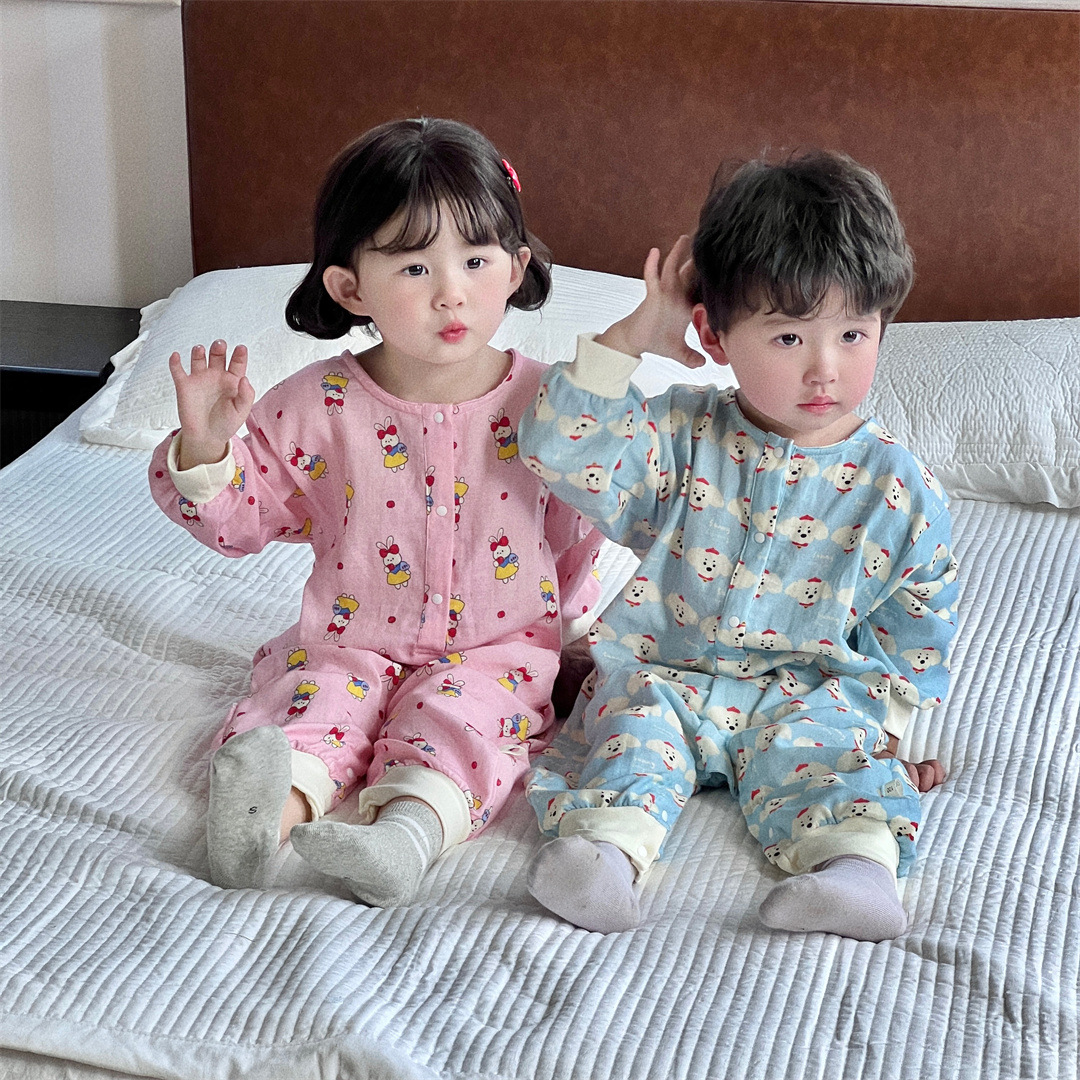 25 봄과 가을 얇은 어린이 슬리핑 백 더블 거즈 소년과 소녀를위한 긴 소매 슬리핑 백 에어컨 룸 다리 안티 킥 아티팩트스토어 가기