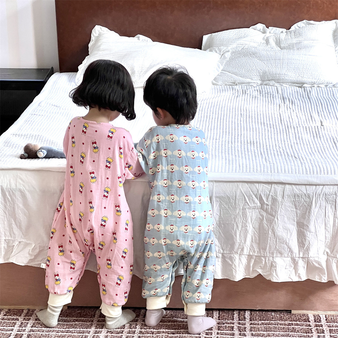 25 봄과 가을 얇은 어린이 슬리핑 백 더블 거즈 소년과 소녀를위한 긴 소매 슬리핑 백 에어컨 룸 다리 안티 킥 아티팩트