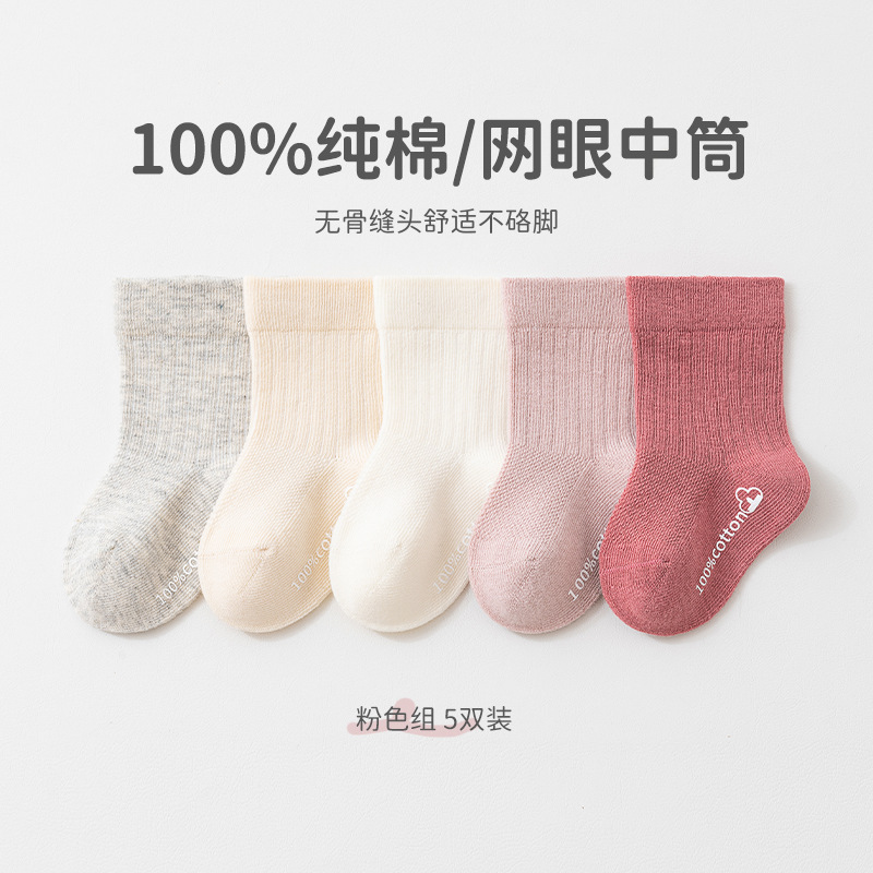 어린이 중간 튜브 양말 봄과 여름 빗질면 메쉬 통기성 어린이 양말 캔디 컬러 뼈없는 신생아 양말 클래스 A스토어 가기