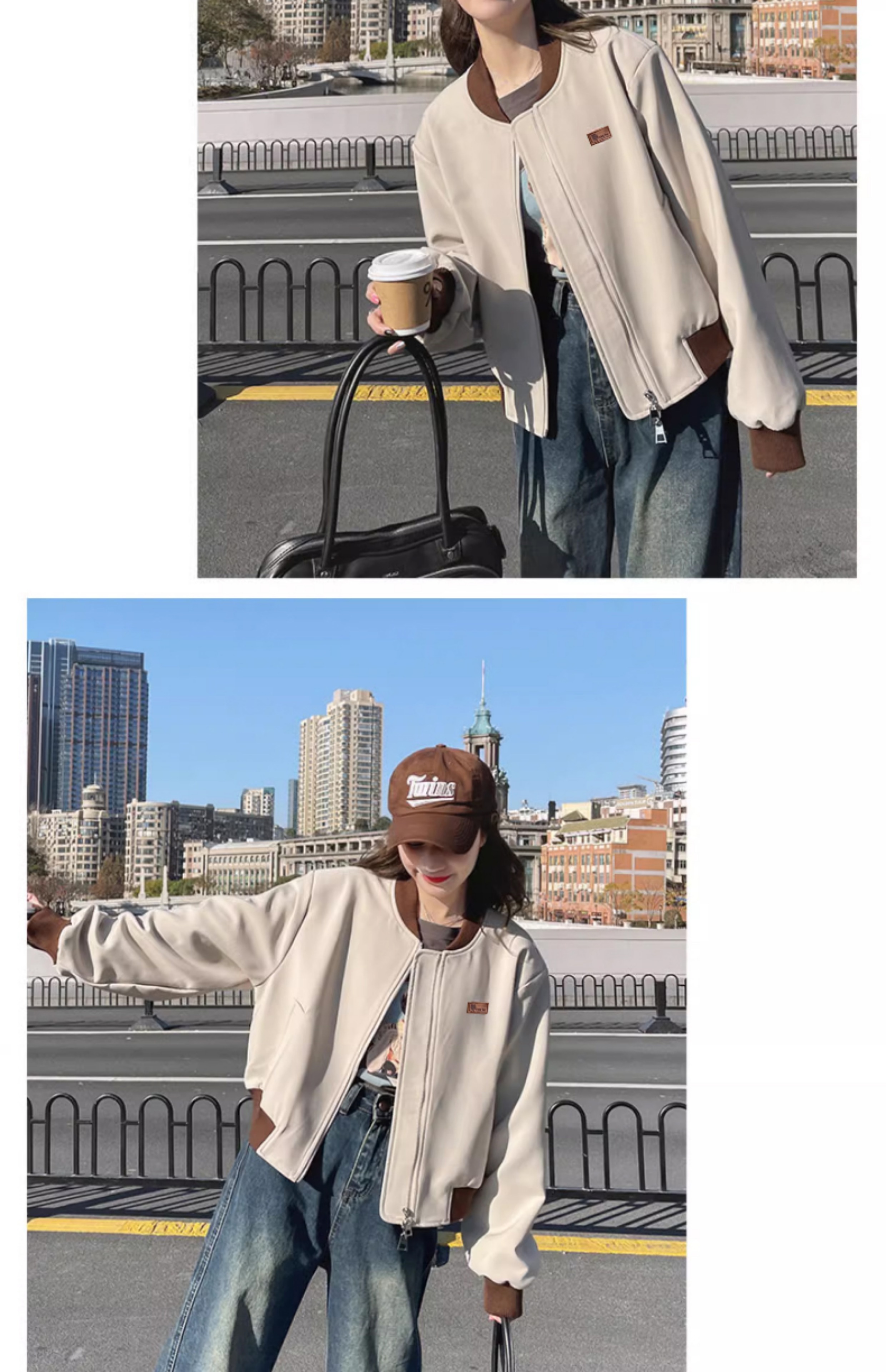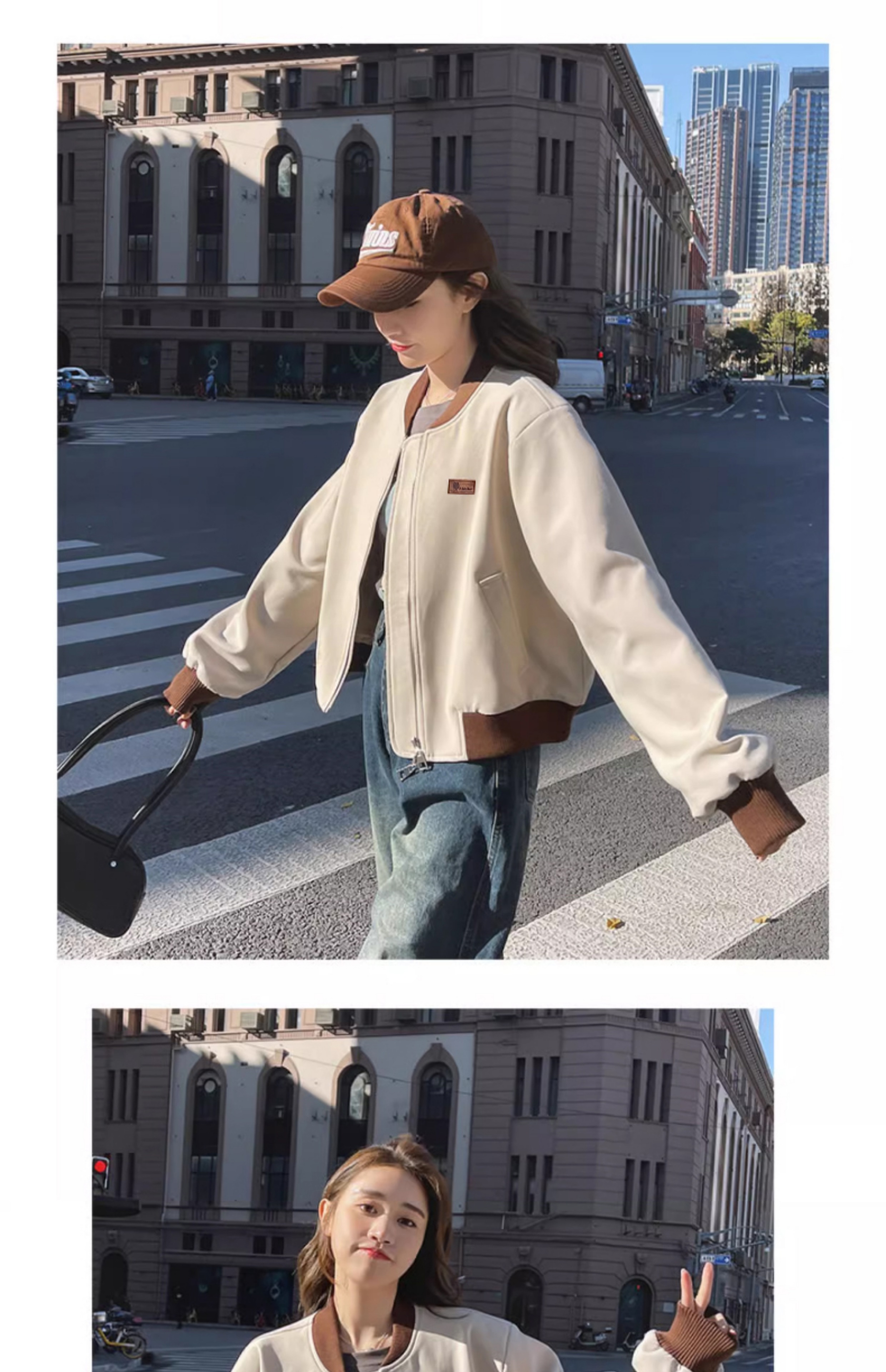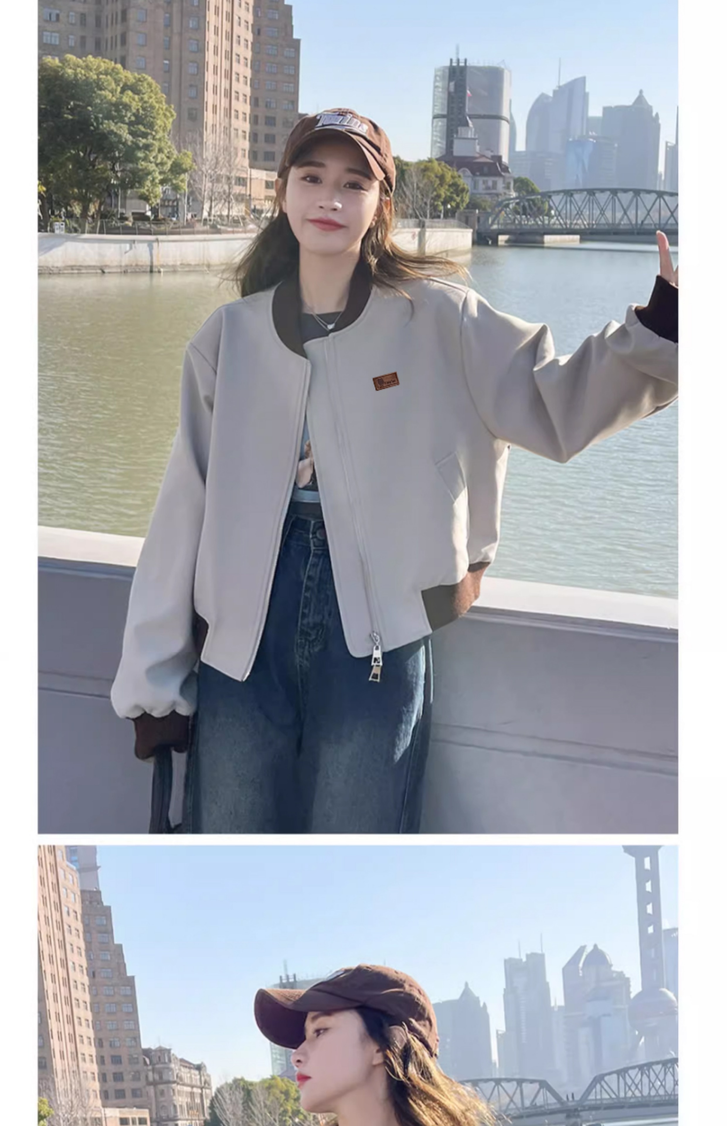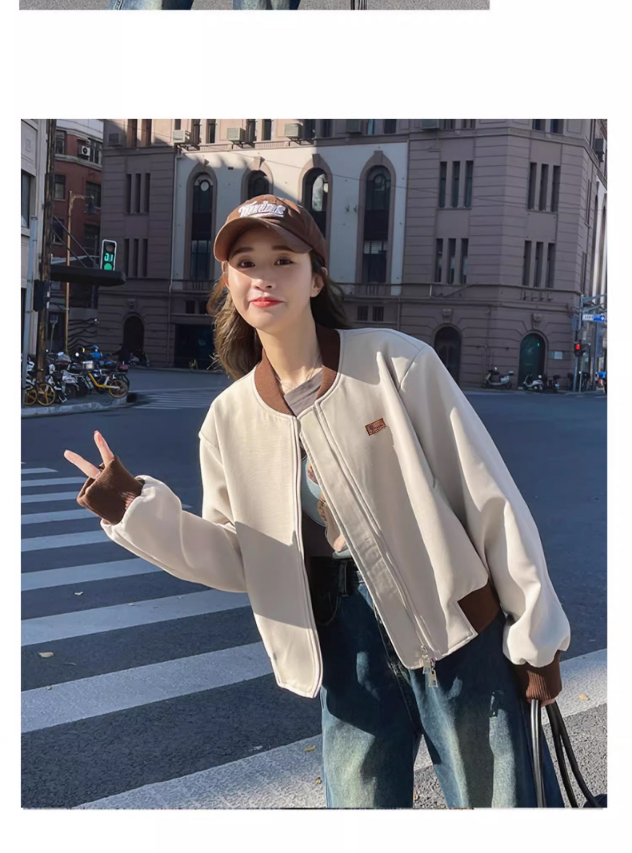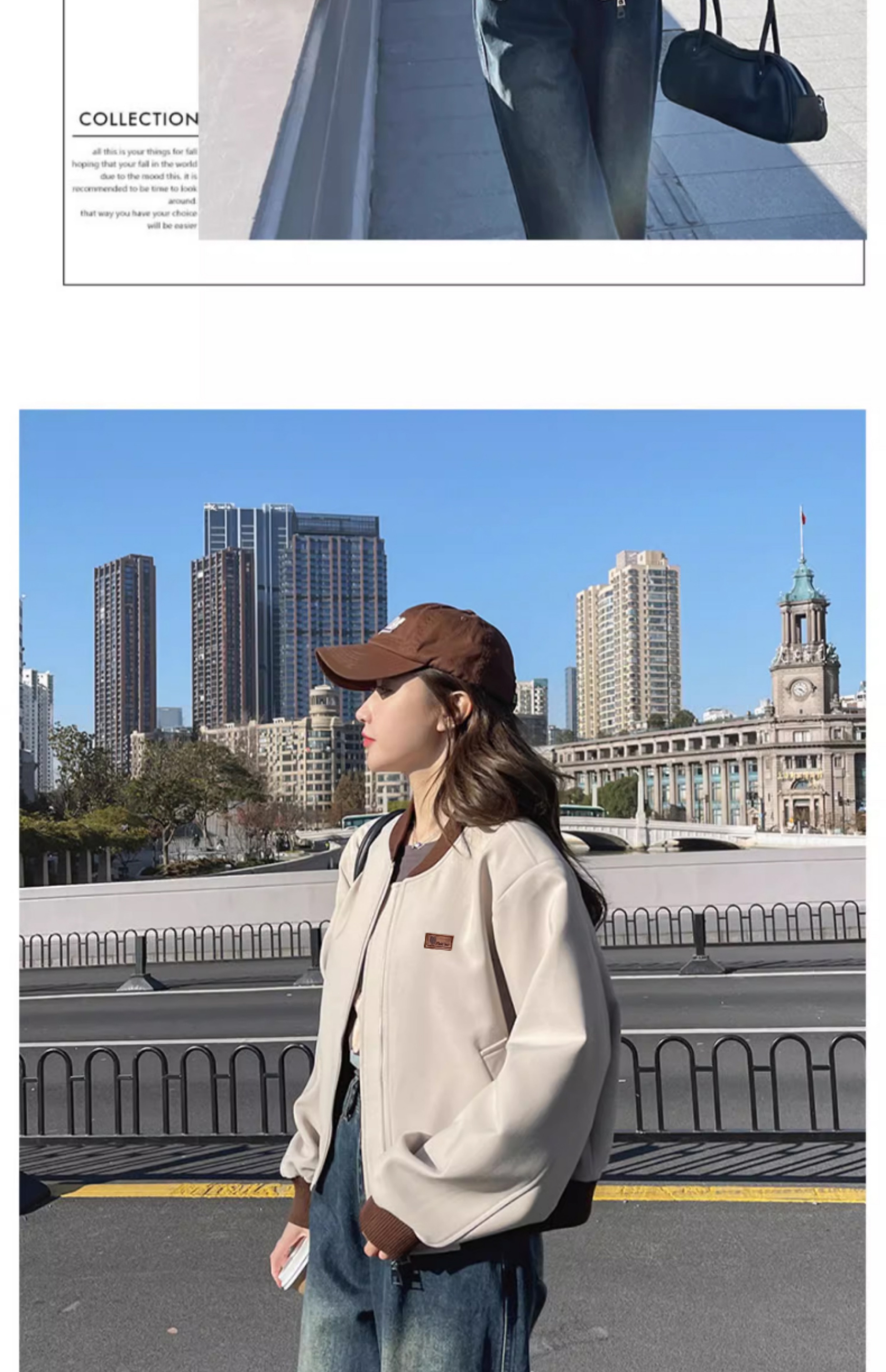 스웨트 코트 여자 2024 봄과 가을 여자 새로운 야구 세트 짧은 미국식 컬러 콘트라스트 스트리트 캐주얼 재킷 탑스토어 가기