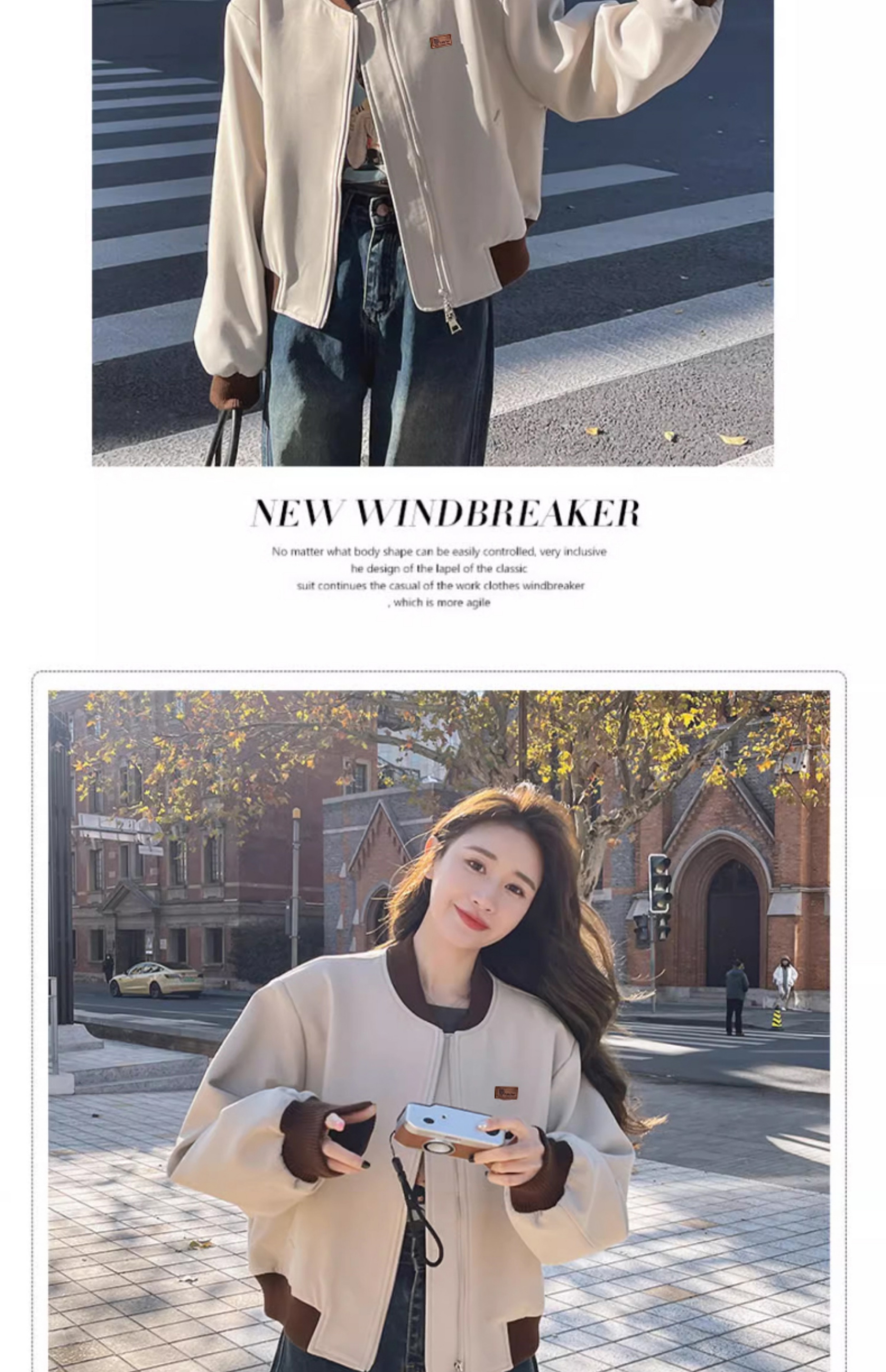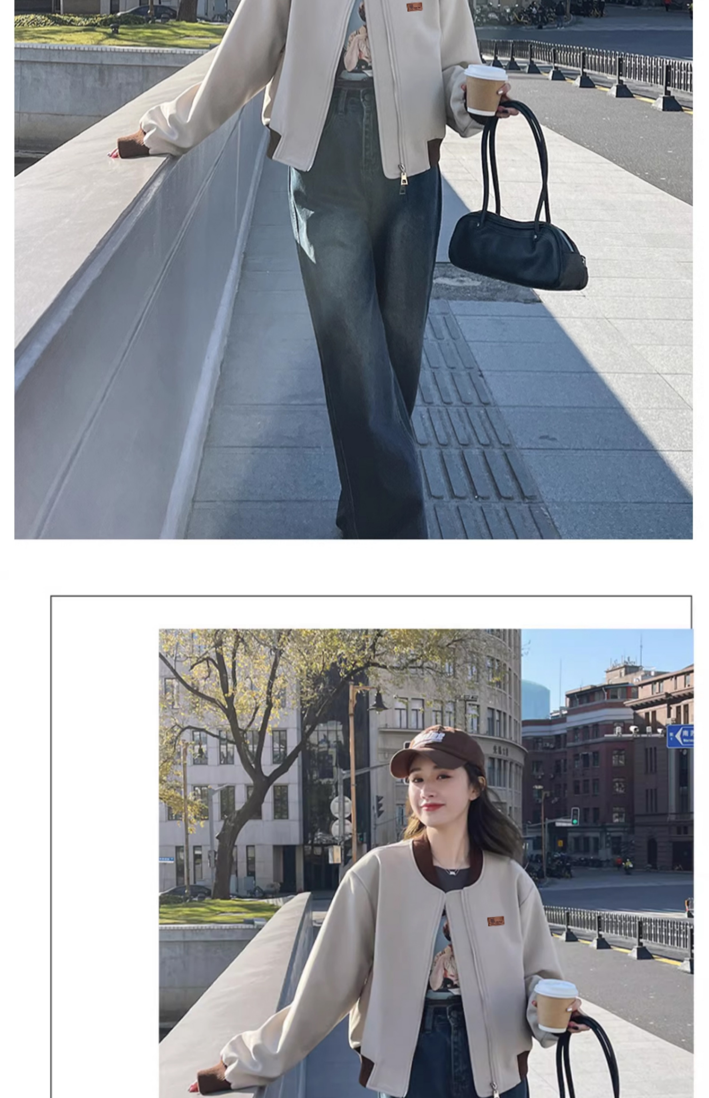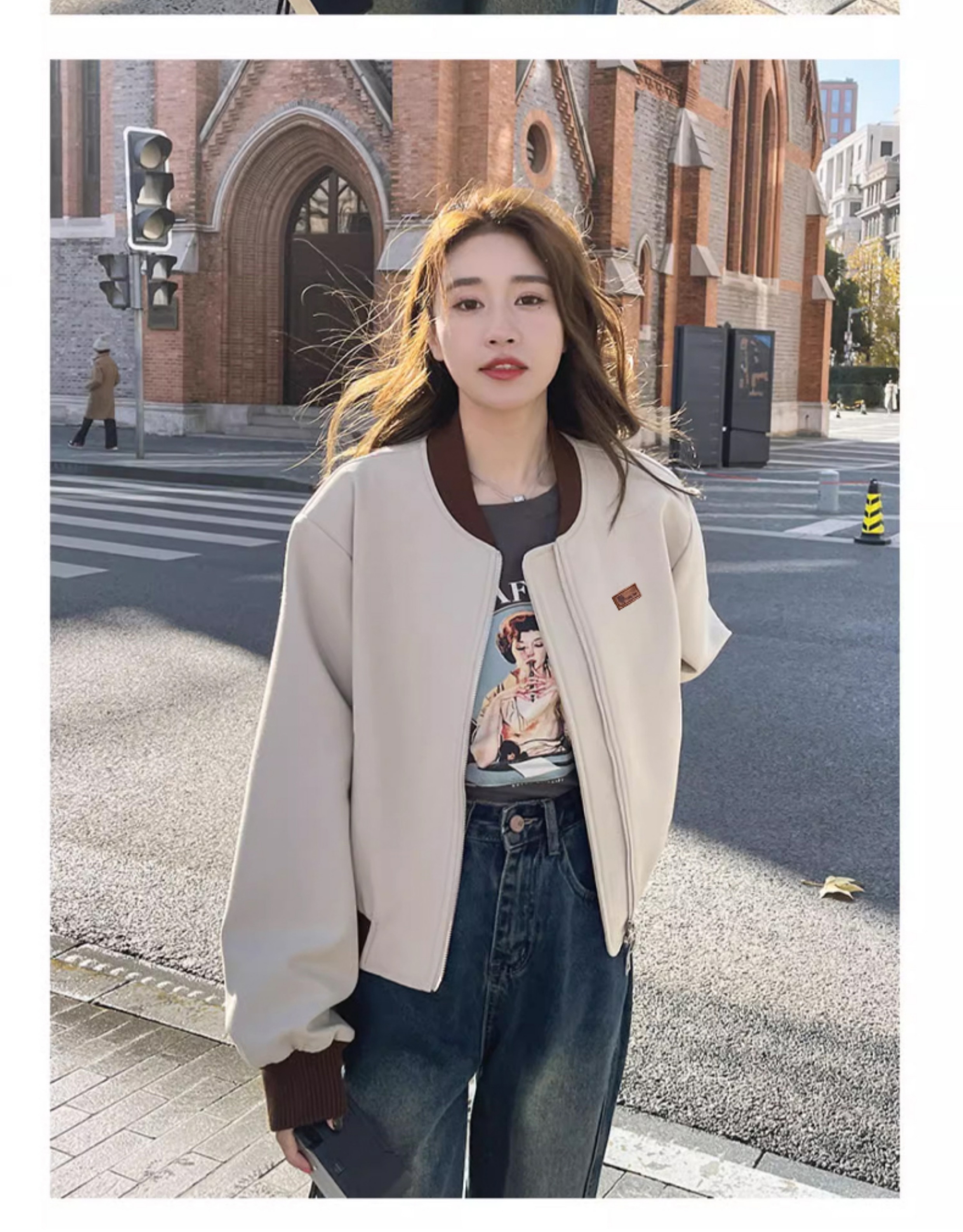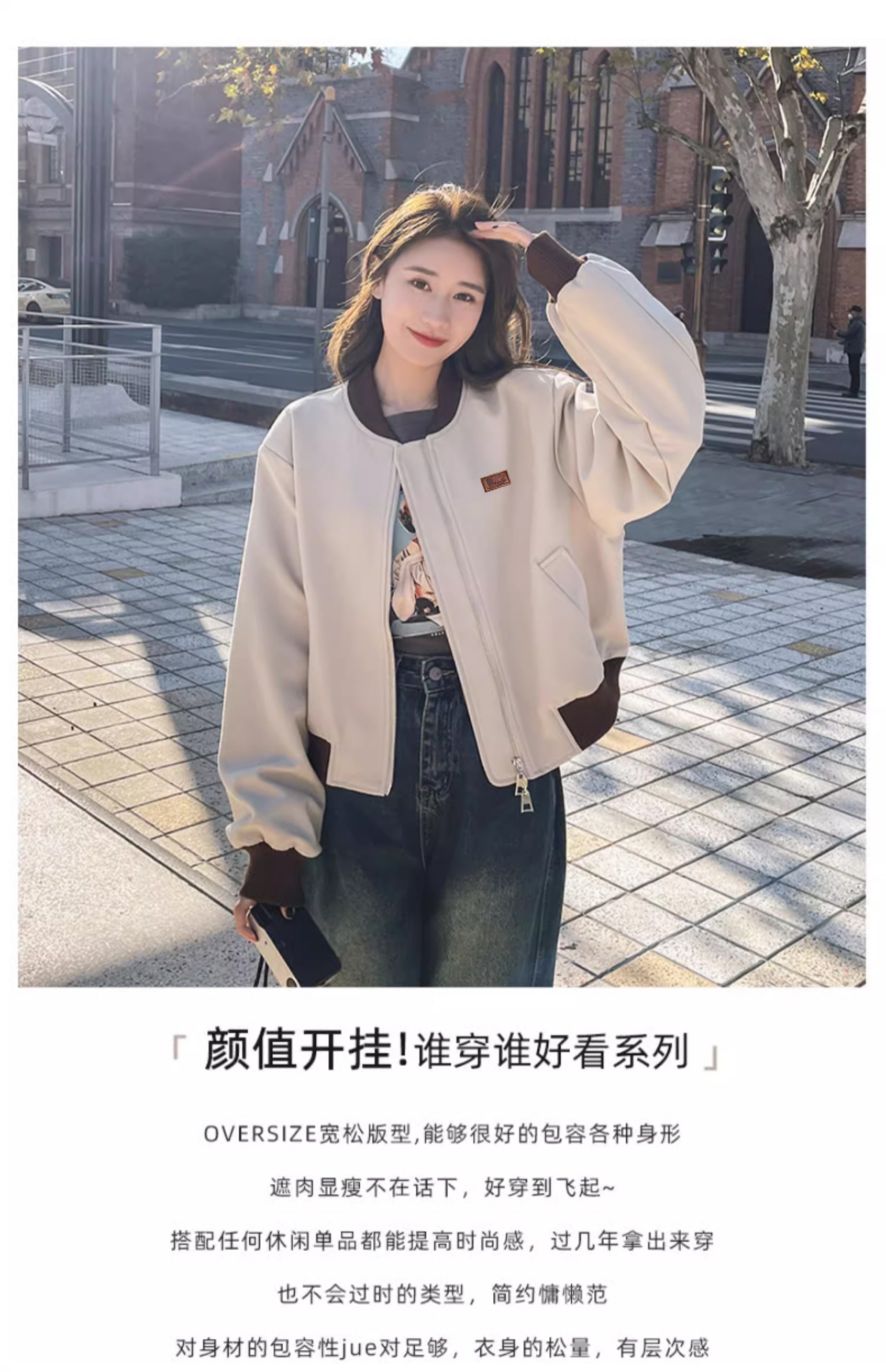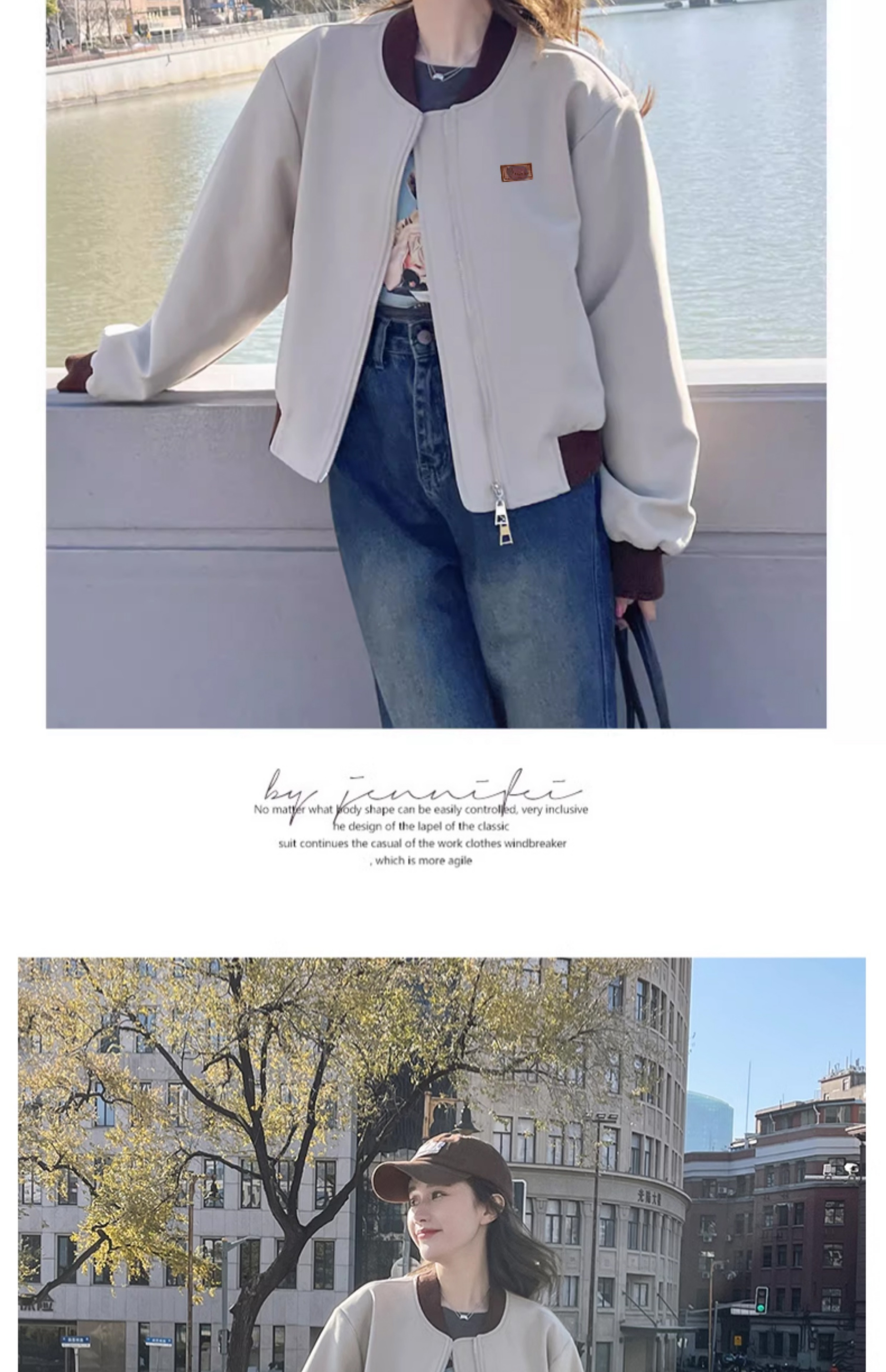 스웨트 코트 여자 2024 봄과 가을 여자 새로운 야구 세트 짧은 미국식 컬러 콘트라스트 스트리트 캐주얼 재킷 탑스토어 가기