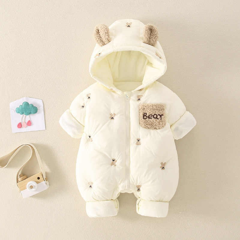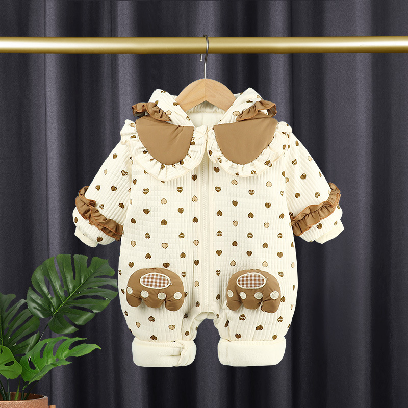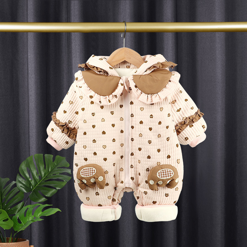 아기의 겨울 스타일 오버홀 귀여운 후드 의류 기모 등반 의류 아기 소녀의 겨울 옷 서양식 면화 패딩 코트 슈퍼 귀여운 두꺼운스토어 가기