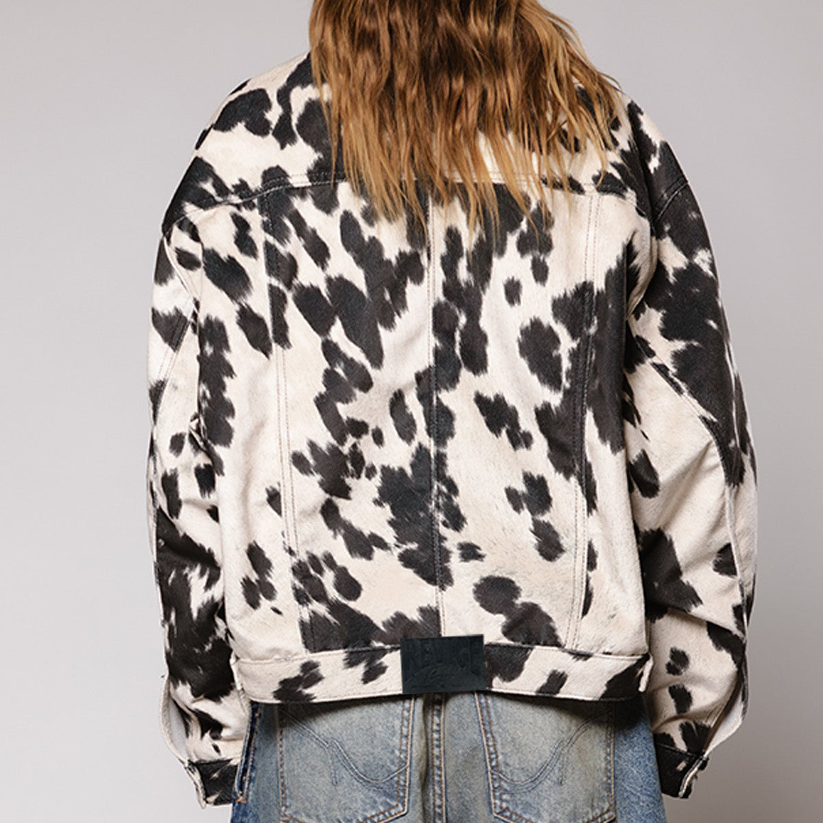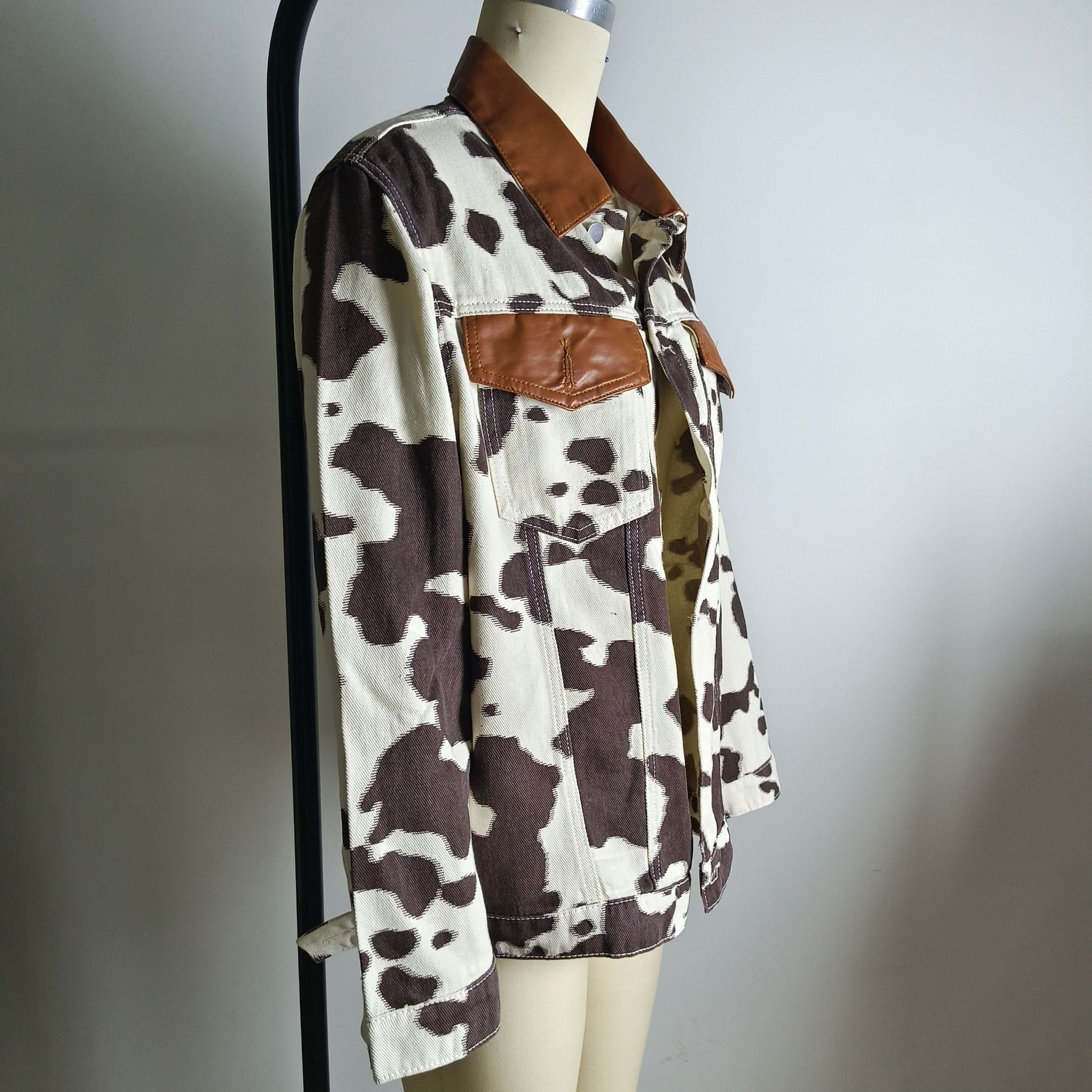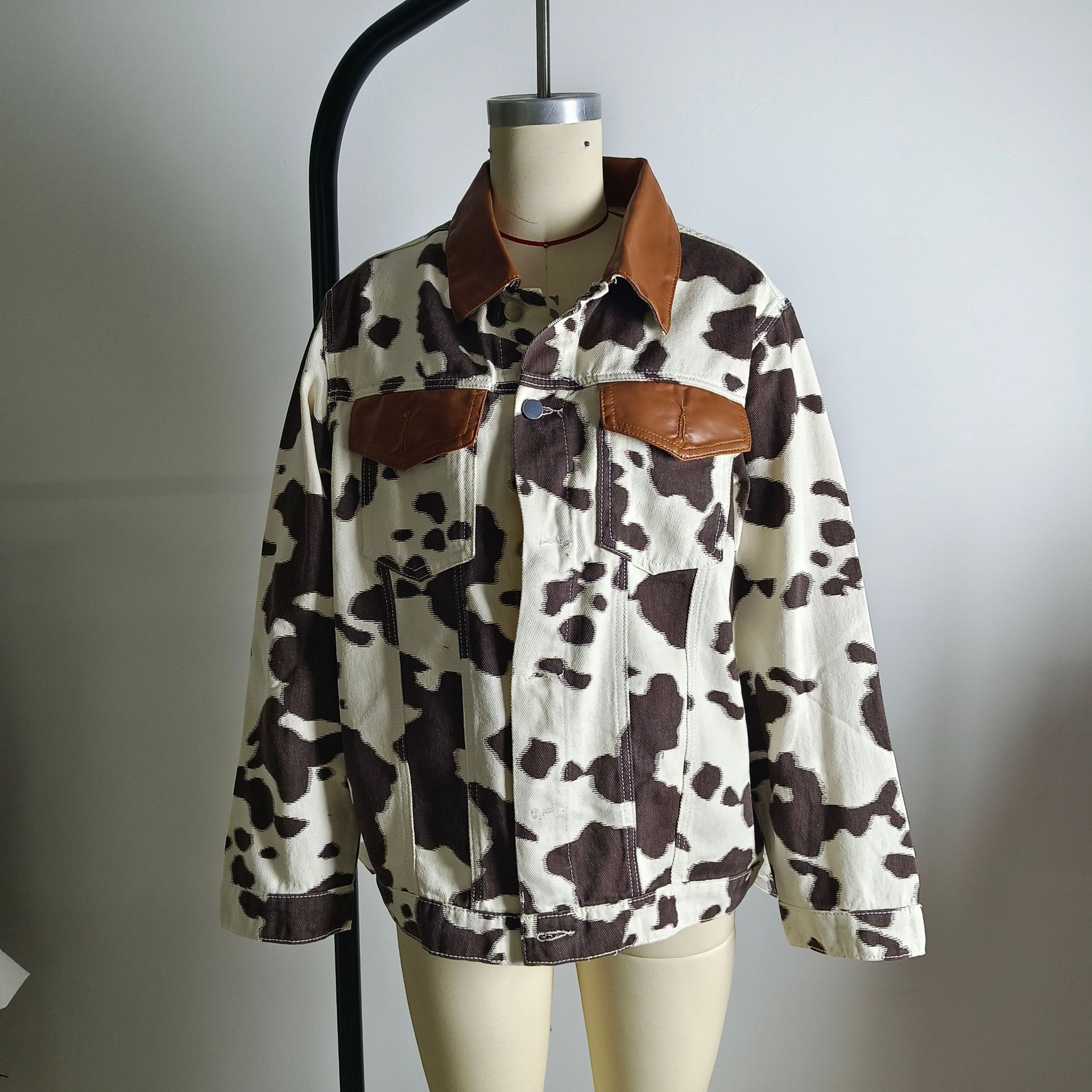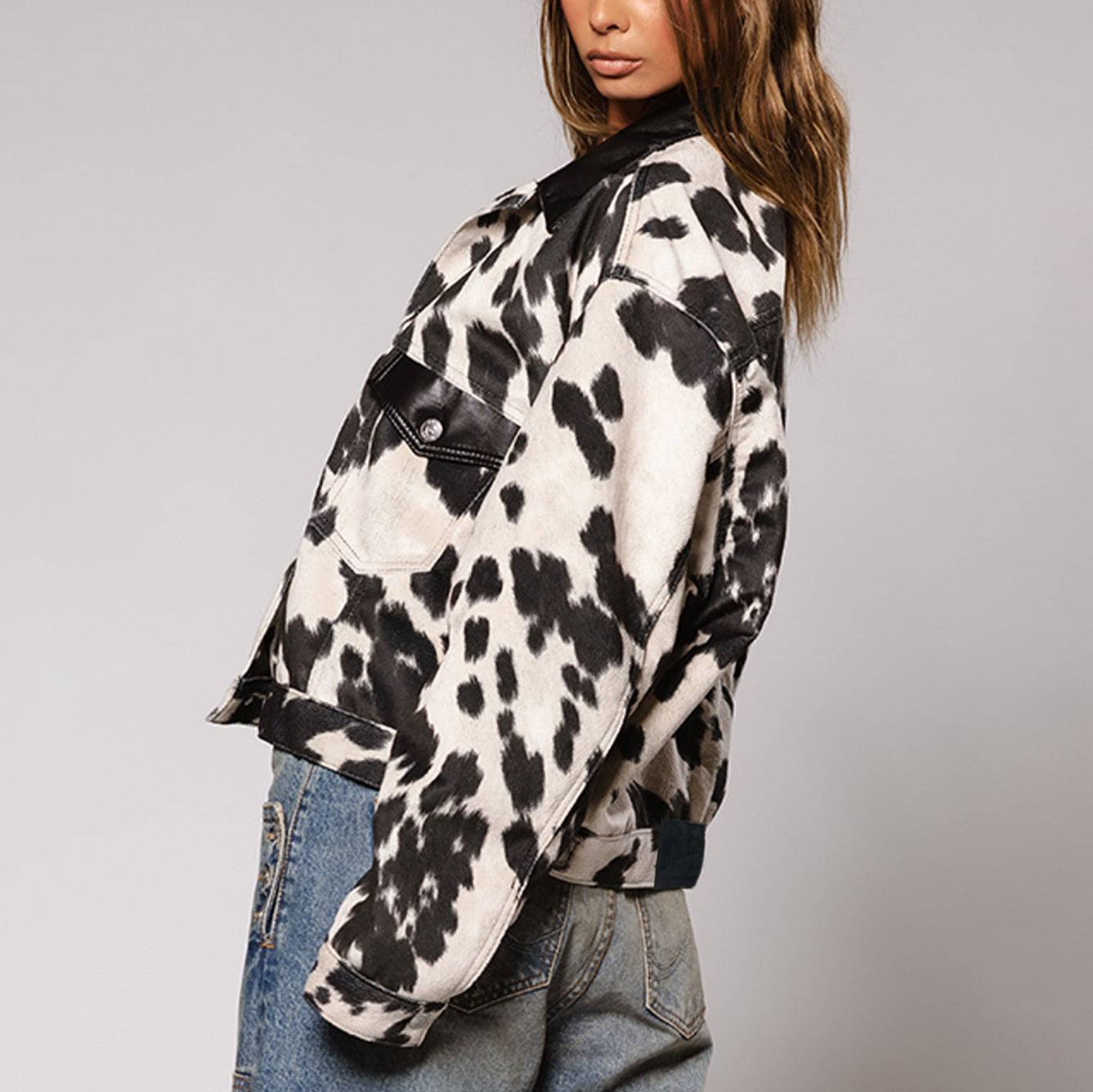 2025春季新款奶牛印花牛仔外套女新款时尚辣妹开衫夹克上衣定制