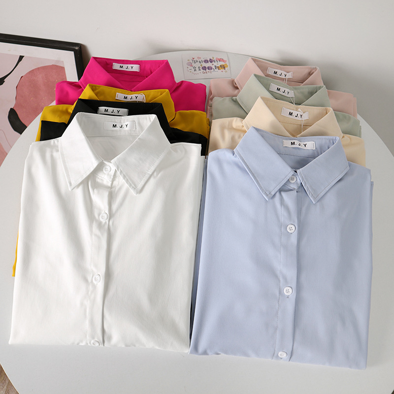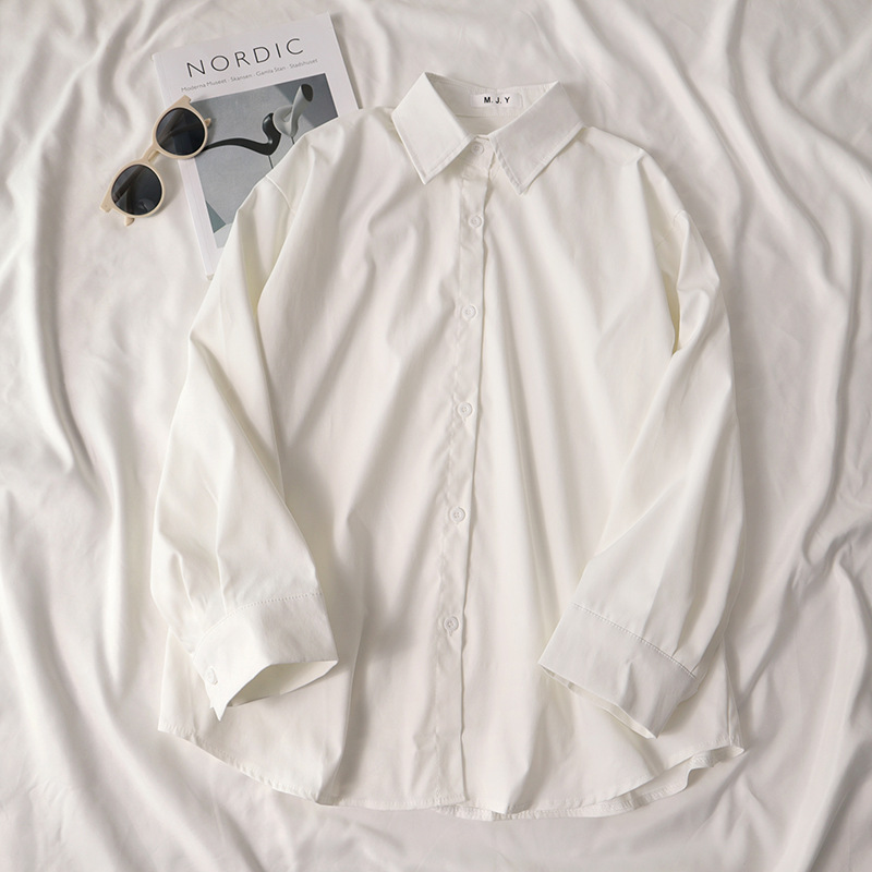 흰색 셔츠 여성의 여름 긴팔 선 스크린 코트 봄과 가을 느슨한 파란색 내부 셔츠스토어 가기
