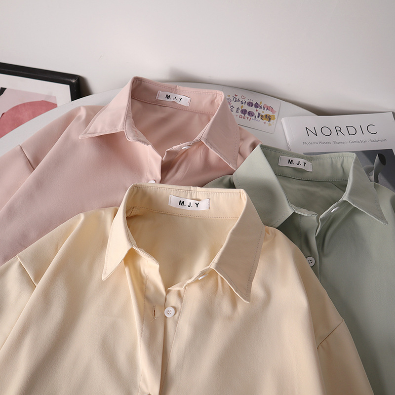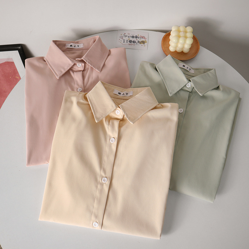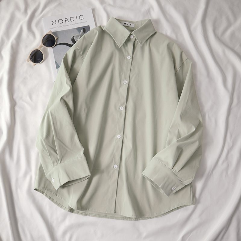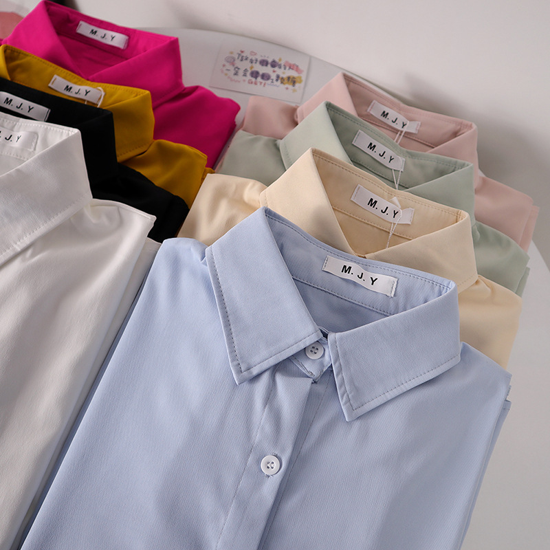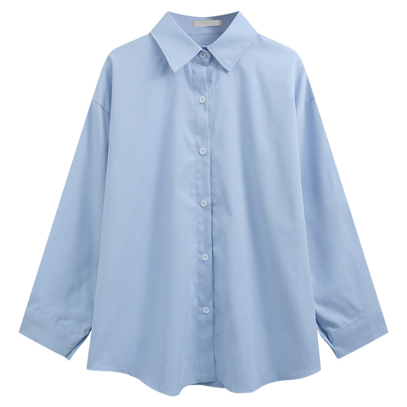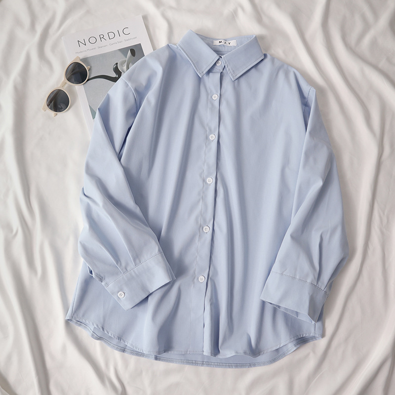 흰색 셔츠 여성의 여름 긴팔 선 스크린 코트 봄과 가을 느슨한 파란색 내부 셔츠