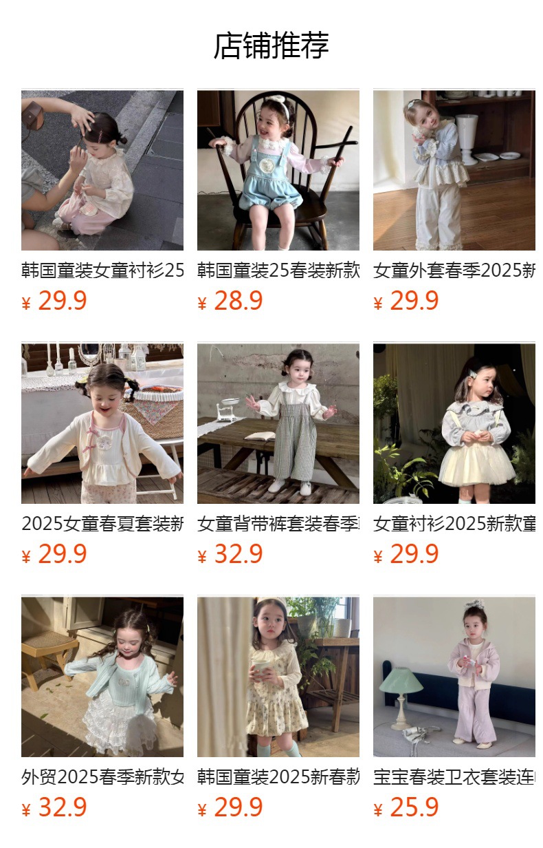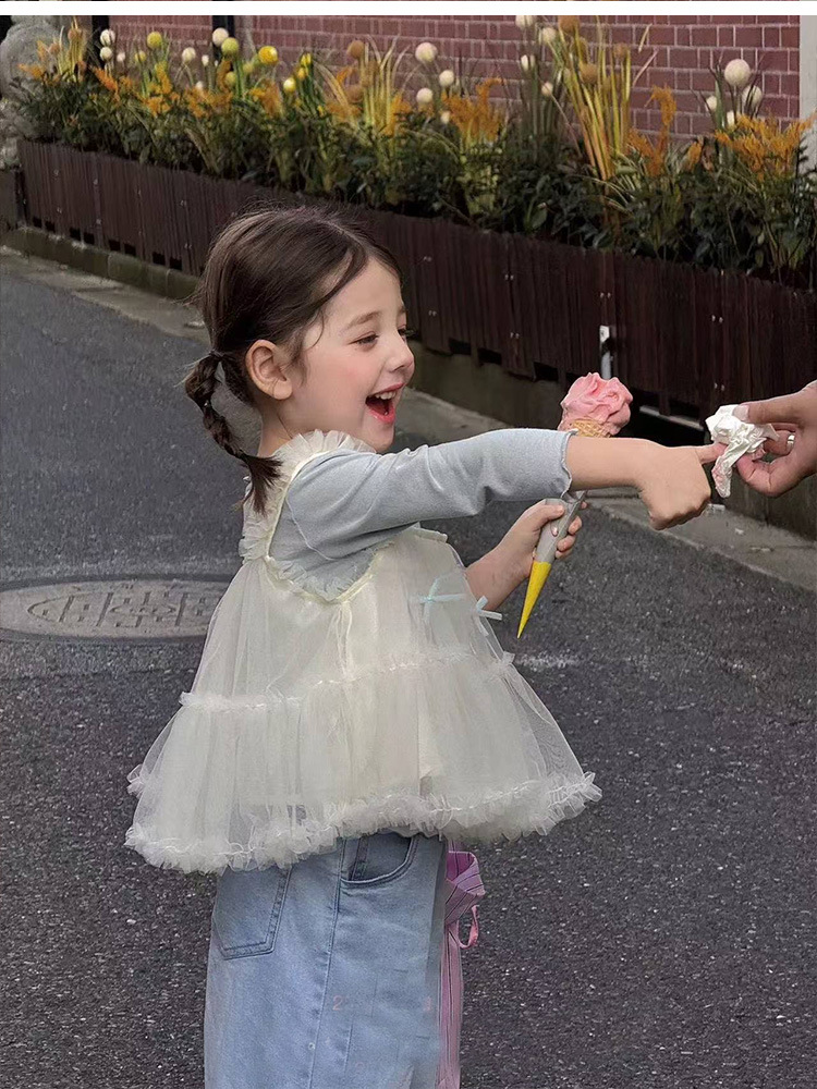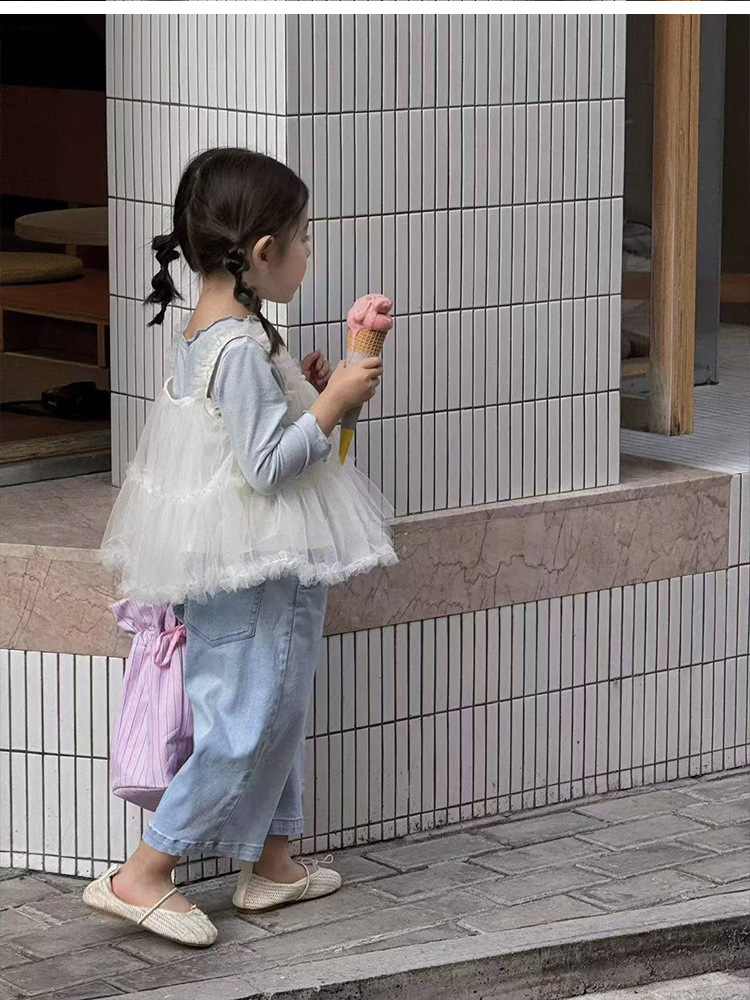 한국 아동복 소녀 세트 2025 봄 새로운 어린이 서양식 유행 콘돌 스트랩 거즈베이스 셔츠 청바지스토어 가기