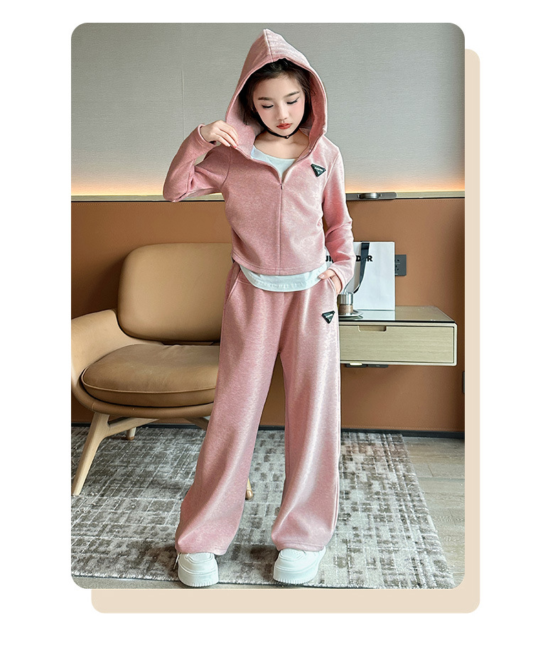 큰 어린이 후드 지퍼 코트 캐주얼 와이드 레그 팬츠 투피스 세트 2025 봄 새로운 어린이 외국 스타일의 한국 버전 세트스토어 가기