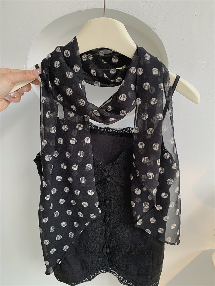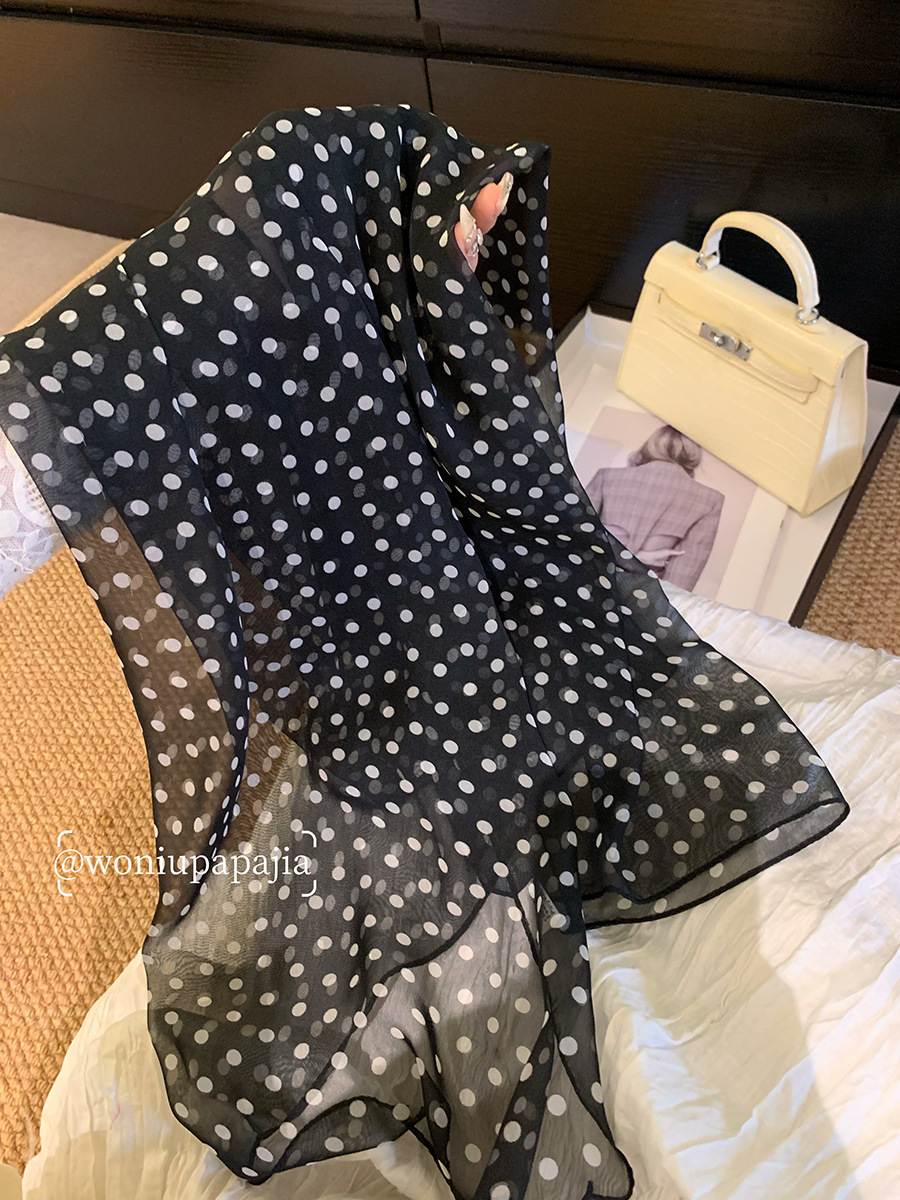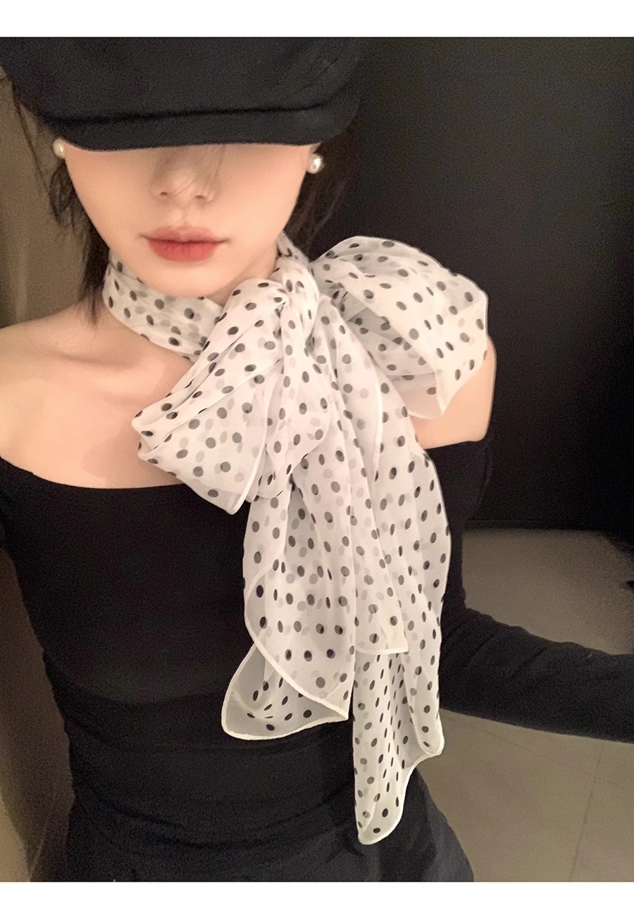 한국 스타일 흑백 폴로 도트 스카프 여성의 2025 봄 새로운 하이 엔드 목 긴 리본 목 액세서리