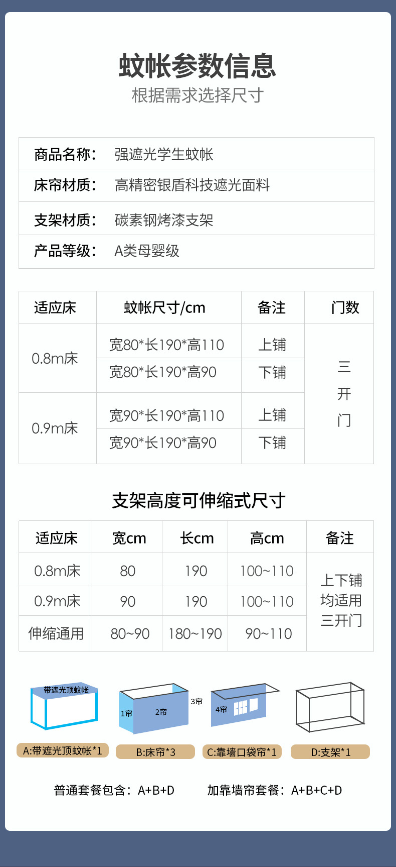 • 0.9m 침대 [이층침대용 범용 텔레스코픽 브라켓] 3도어 폭 90 길이 190 높이 조절 가능 90~110
