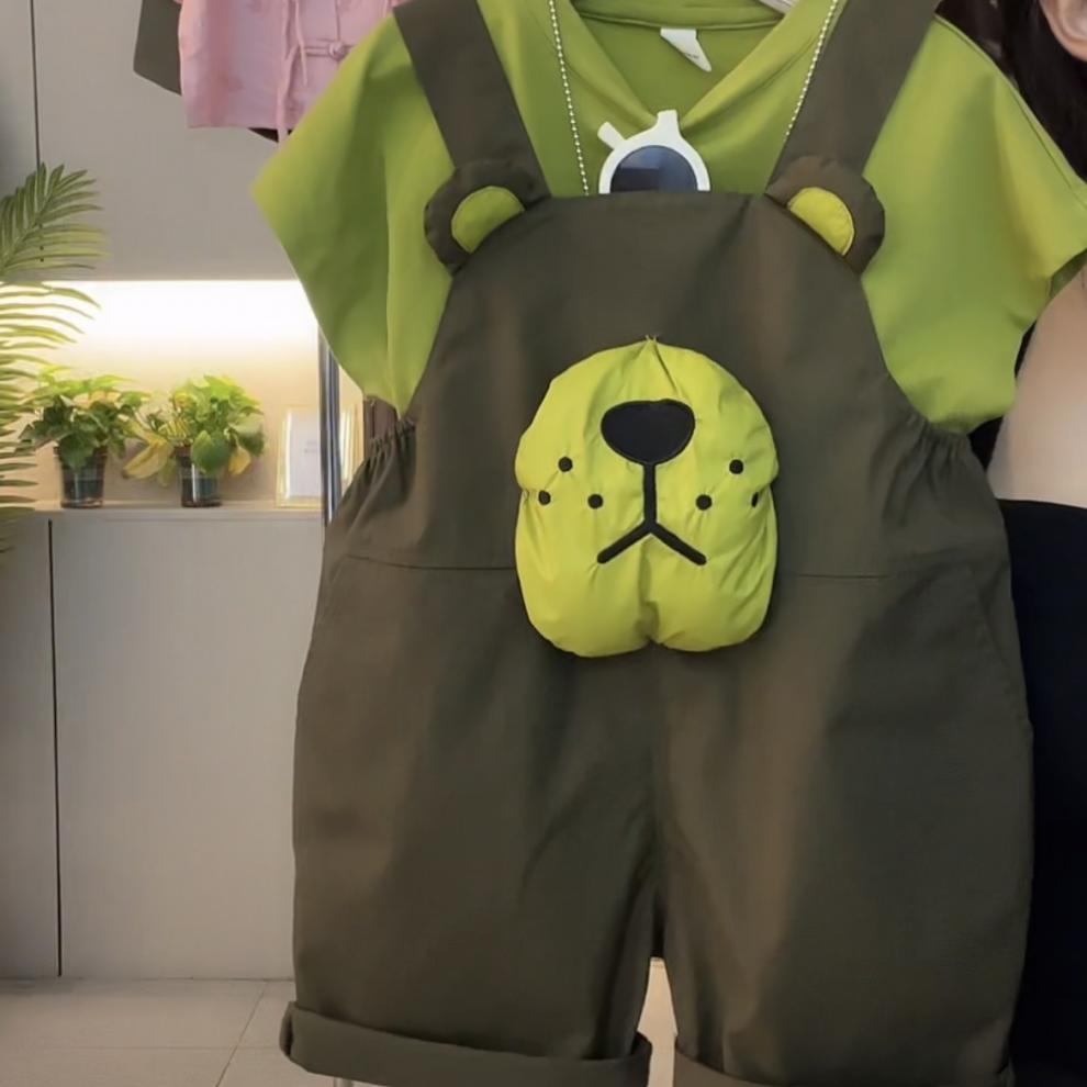 남자와 여자 아기 여름 귀여운 세트 2024 새로운 한국 어린이 여름 만화 서양식 짧은 소매 멜빵 유행스토어 가기
