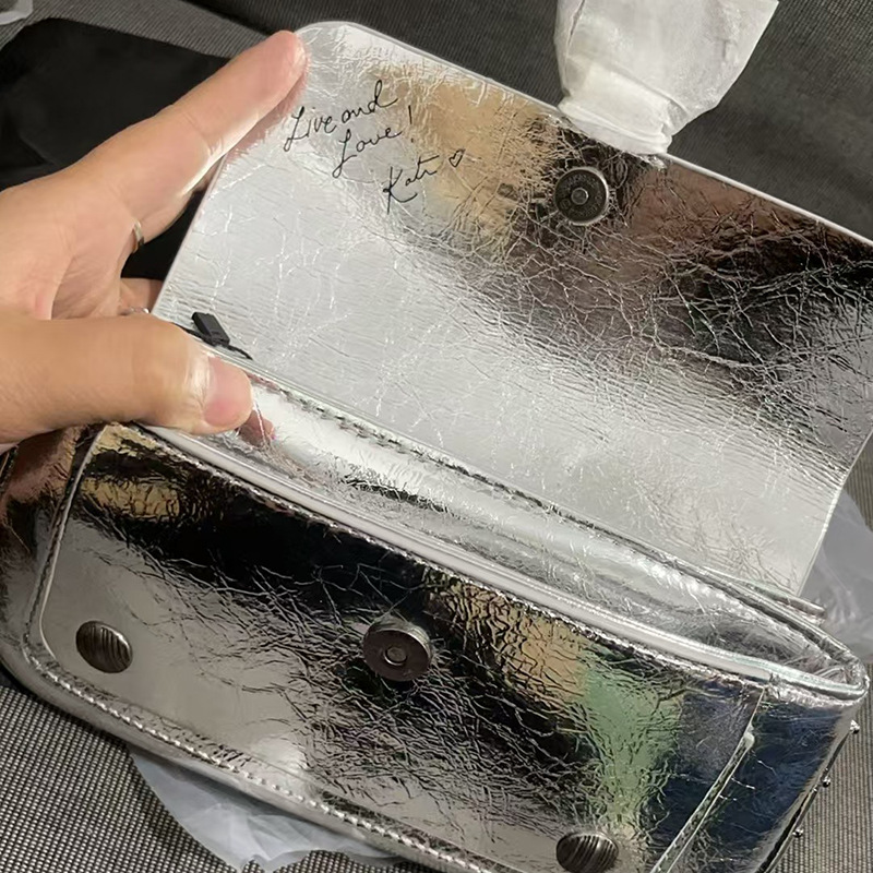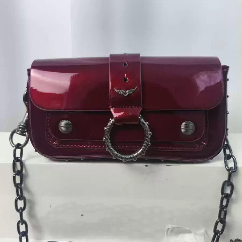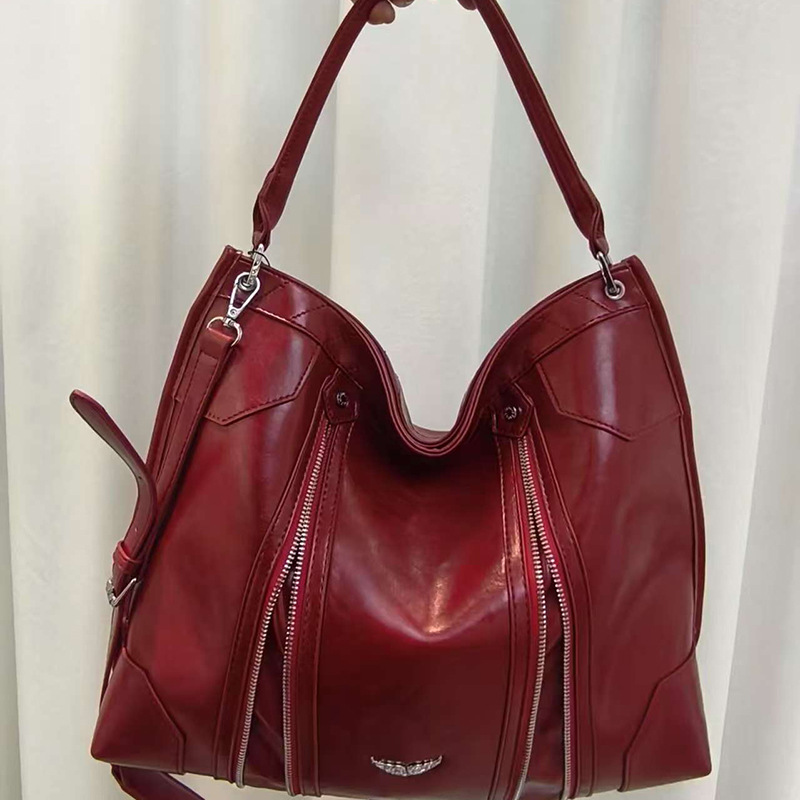 • 실버 하드웨어 오일 가죽 레드
