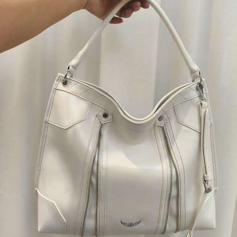 • 실버 하드웨어 오일 가죽 블랙