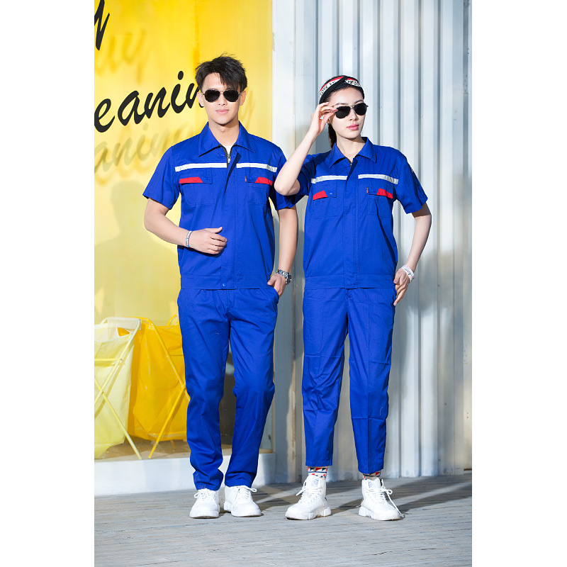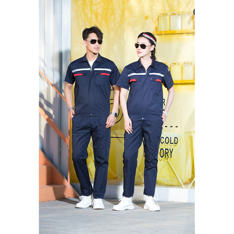 도매 여름 반팔 정전기 방지 노동 보호 의류 작업복 세트 반사 전원 그리드 Sinopec 급유 작업장 인쇄 및 자수