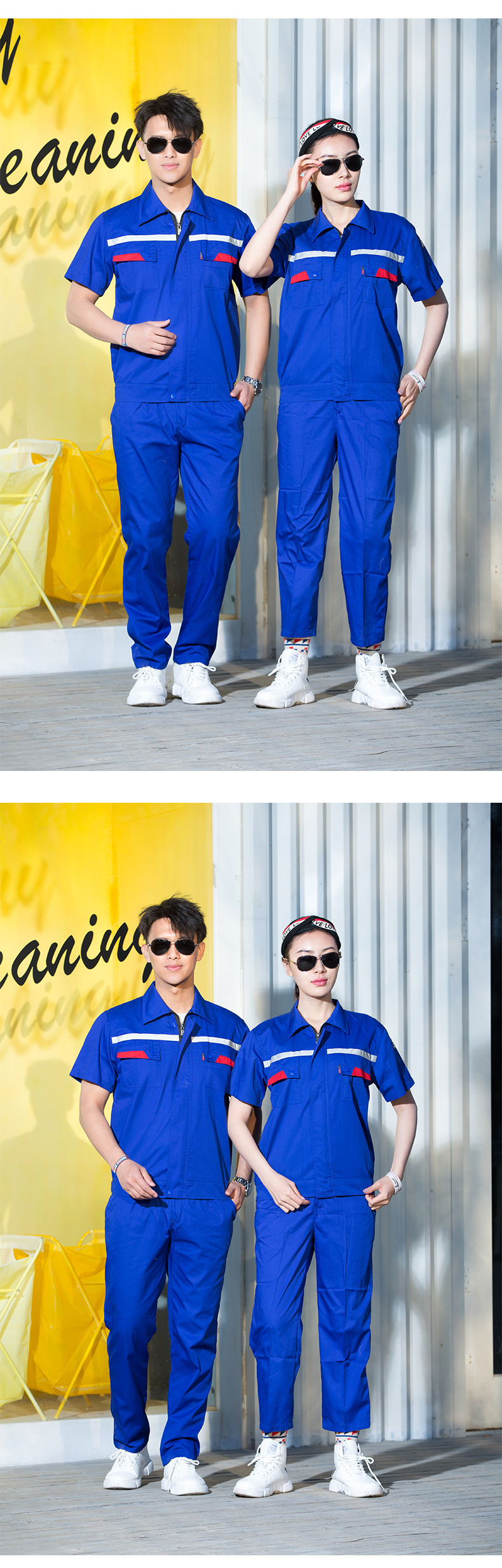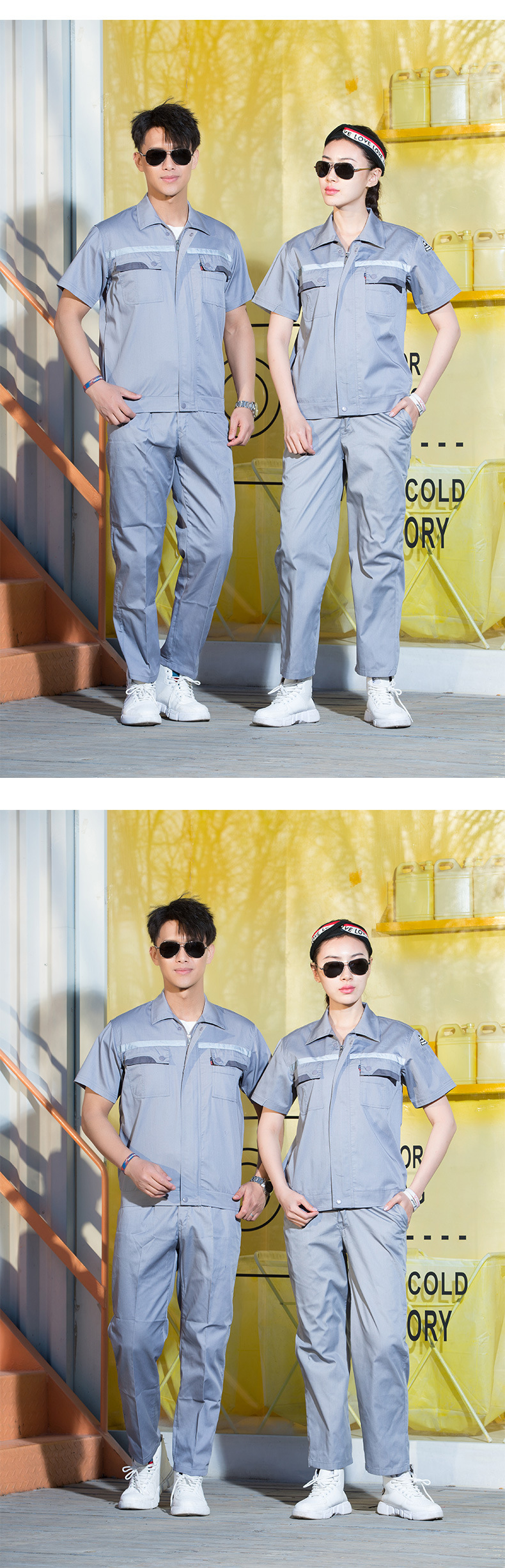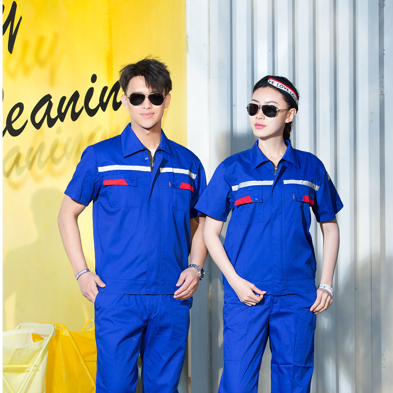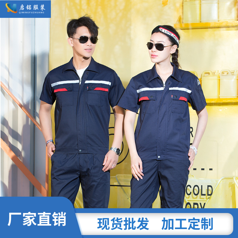 도매 여름 반팔 정전기 방지 노동 보호 의류 작업복 세트 반사 전원 그리드 Sinopec 급유 작업장 인쇄 및 자수스토어 가기
